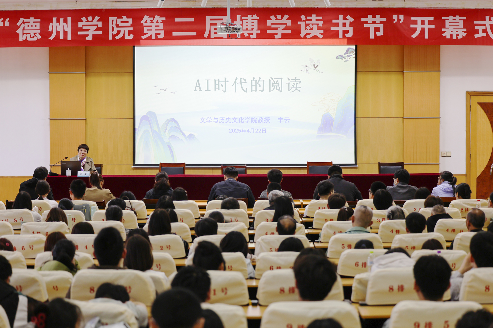 开幕式上,为获评“beat365官方网站十大阅读之星”的学生颁发了荣誉证书。教师和学生代表分享了阅读体会和收获。文学与历史文化学院丰云教授作了题为《AI时代的阅读》的学术报告。