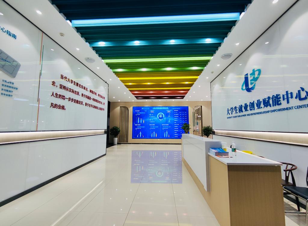 大学生就业创业赋能中心建成以来,秉承“OBE”工作理念,坚持“学生全年级、人员全覆盖、生涯全周期、服务全链条”工作理念,依托运营管理专业、数智场景多元、数据要素活跃的优势,大力推行数字化智能化就业服务模式,为同学们提供生涯与职业规划教育、生涯测评、就业岗位精准推送、就业指导、就业画像、AI简历制作、AI模拟面试、大数据展示管理等数智就业服务,并在全省率先出台《beat365官方网站关于加快构建毕业生高质量就业服务体系行动方案》。方案与应用型创新人才培养体系建设、“招培就”联动机制、专业调整规划、就业协同联动机制等制度文件一体联动,进一步强化应用型人才培养和就业导向,着力推动就业工作从单点突破向系统集成,初步构建形成了一套有体系、有闭环、有质效的就业新政和工作范式。