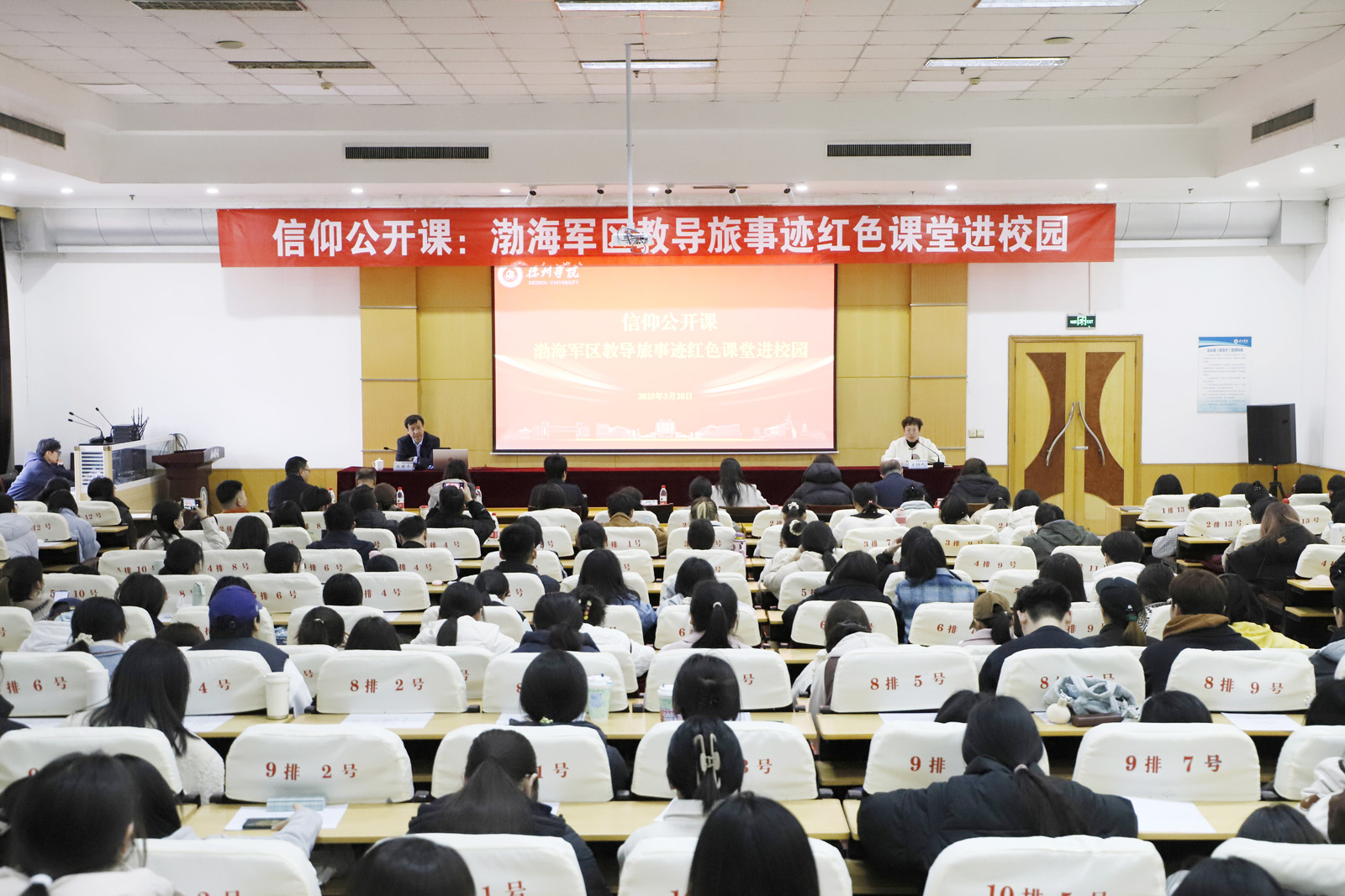 德州市委统战部,学校党委宣传部、统战部、团委、马克思主义学院负责人,思政课教师、“八个一”工程专班、校级“青马工程”、学生骨干培训班学员等260余名师生参加活动。