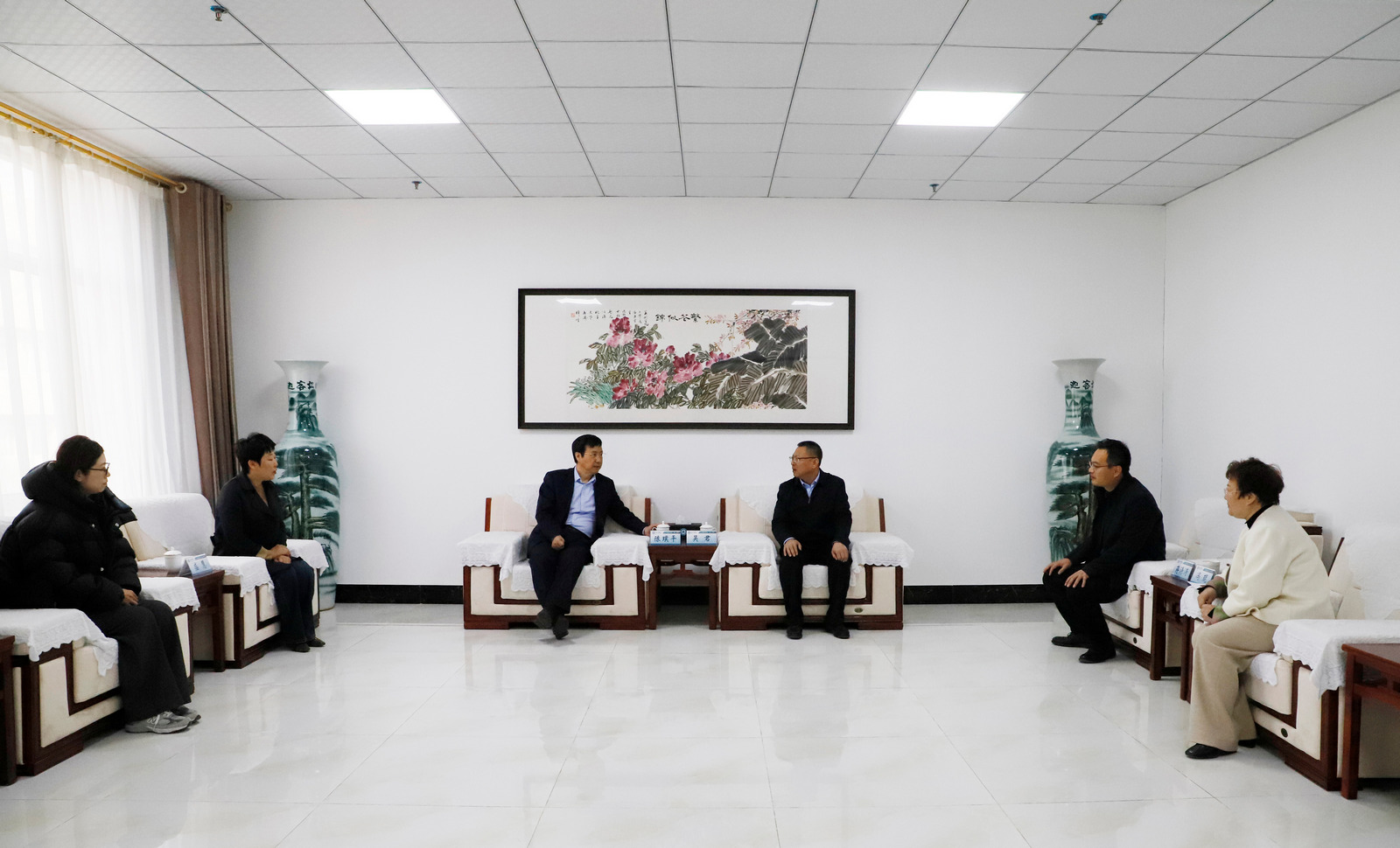 座谈中,吴君向陈璞平介绍了学校落实立德树人根本任务,充分发挥红色文化资源精神培育、价值引导功能,推动融入全环境立德树人体系,推进“大思政课”建设的相关情况和主要做法。他指出,德州是革命老区,在长期的革命、建设和改革实践中,涌现出了众多先模人物和可歌可泣的革命故事。作为驻德高校,我们将充分发挥学科专业和人才聚集优势,大力实施红色基因传承工程,用心用情用力做好红色资源挖掘、保护和传承,深入开展社会主义核心价值观宣传教育,引导广大德院学子传承红色基因、赓续红色血脉,积极投身强国建设、民族复兴伟业,着力培养担当民族复兴大任的时代新人。陈璞平对学校传承弘扬渤海军区教导旅事迹取得的成效给予高度评价,就进一步加强校地合作,强化红色资源挖掘,深化红色文化研究,构建“大思政”协同育人机制交换了意见建议。