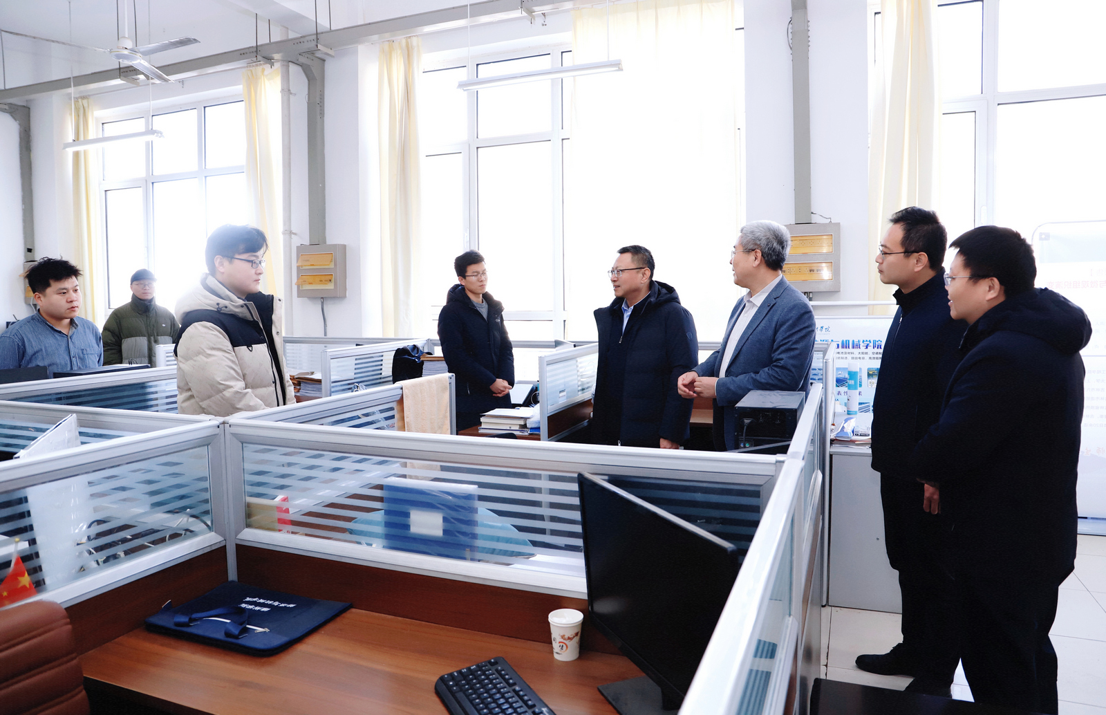 授课结束后,吴君走访了学院博士工作室、行政办公室人员及部分教师,重点了解学科平台建设与科研攻关情况。吴君对学院获批国家自然科学基金面上项目表示了肯定,并强调高端工程机械制造、新能源装备、智能制造等领域是未来学科发展的重点方向,要求学院立足学科优势,统筹谋划专业布局,为学校加快建设高水平有特色国际化应用型大学贡献力量。