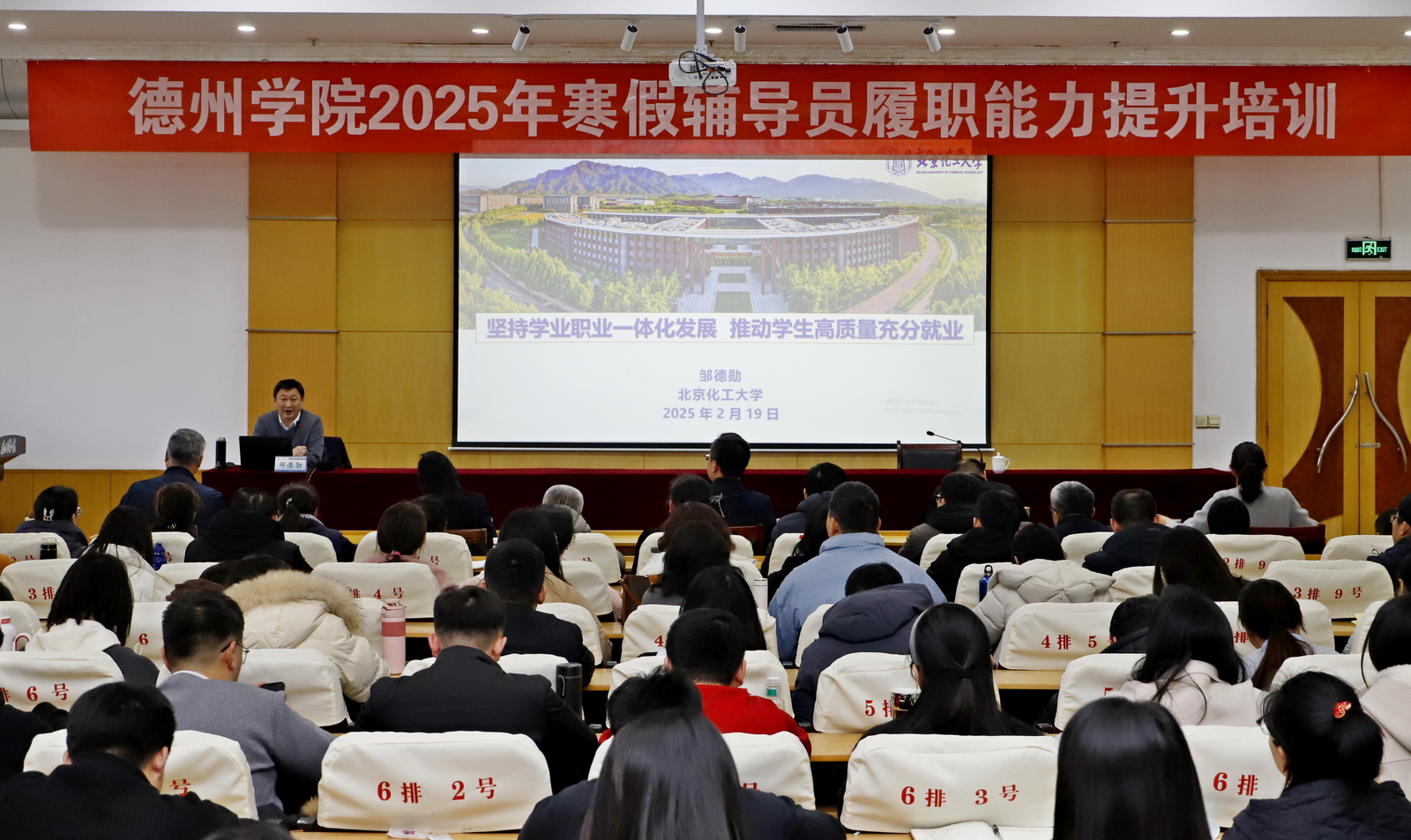 本次培训构建“理论+实践”“线上+线下”立体化课程体系,设有AI 技术赋能辅导员工作坊、专题报告、交流研讨、经验分享等环节。特邀中国高等教育学会思想政治教育分会理事、全国普通高校毕业生就业创业指导委员会委员、北京化工大学党委学工部部长邹德勋教授作《坚持学业职业一体化发展,推动学生高质量充分就业》主旨报告,德州市委政研室(改革办)、德州市发改委、团德州市委、德州市人社局有关专家作辅导报告。