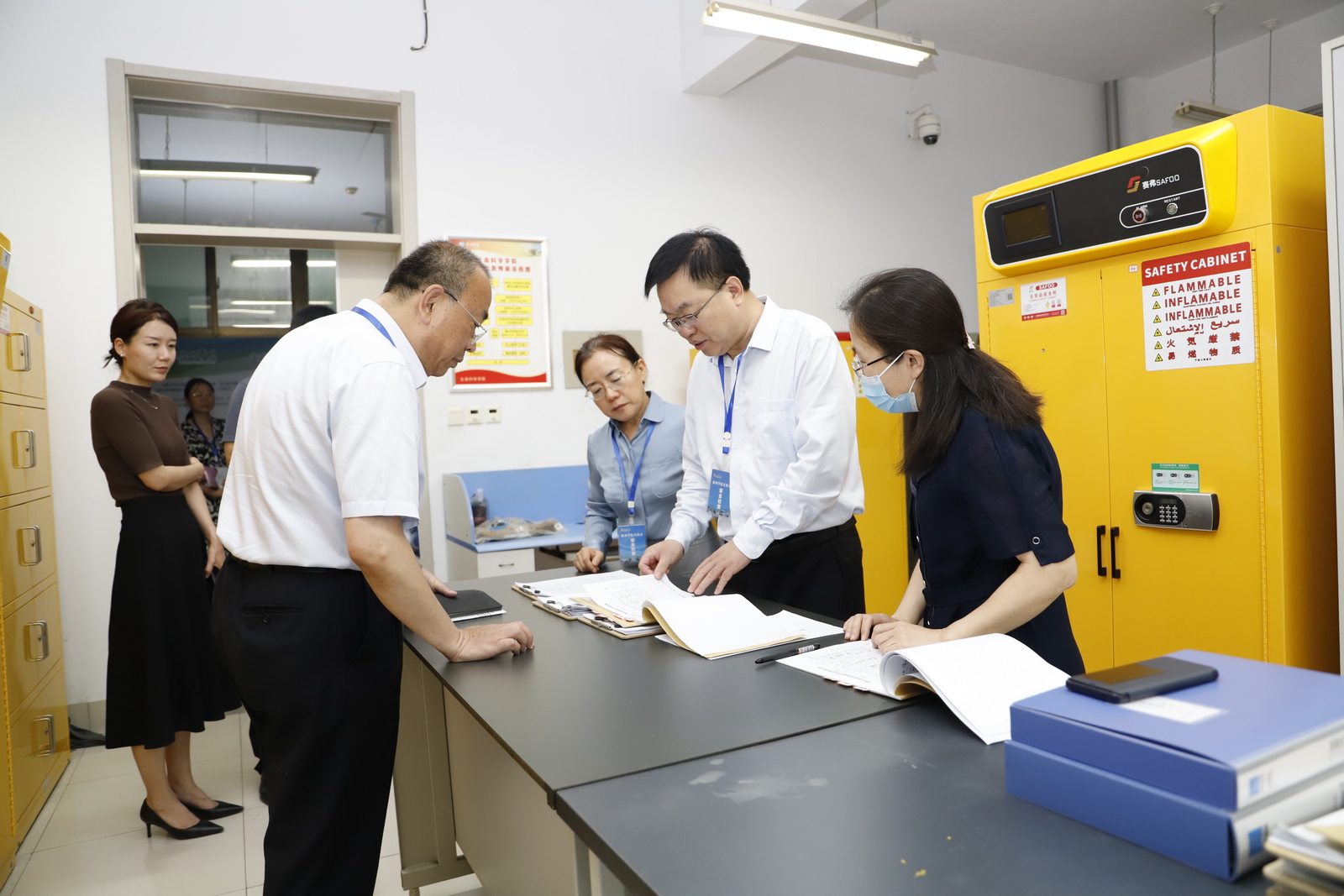 检查围绕制度与档案、实验环境、消防安全、应急设施、水电安全、化学品安全、气瓶安全、危废管理、机械安全、加热及制冷装置管理等方面对健行楼、求索楼、启智楼等学校实验室进行了全面细致地检查。