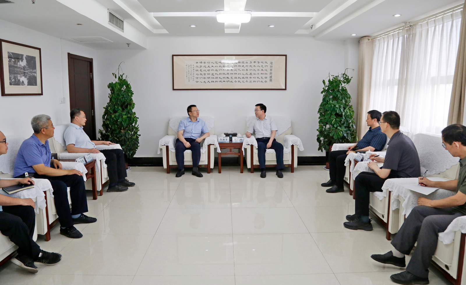6月9日,北京市农林科学院赵春江院士团队核心成员、北京市农林科学院数字植物北京市重点实验室主任、国家农业信息化工程技术研究中心数字植物实验室主任、博士生导师郭新宇教授应邀来校进行学术交流。党委副书记、校长赵长林,党委委员、副校长李甲亮同郭新宇教授进行了座谈。