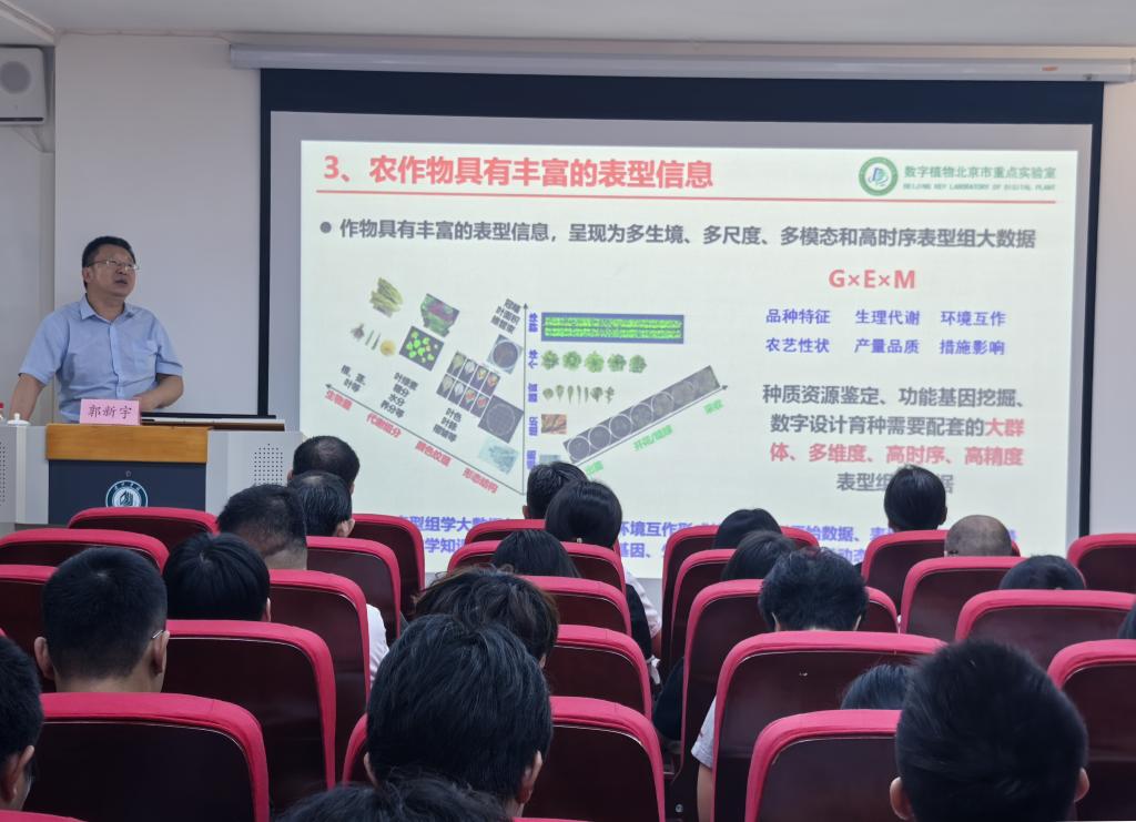 座谈后,郭新宇教授作了题为《作物表型组学技术装备研发及应用》的学术报告。郭教授系统地介绍了作物表型组学技术装备研发的最新进展、核心挑战及其广阔的应用前景,清晰地展示了从理论创新、关键技术突破到装备研制,再到实际应用的全链条创新路径。