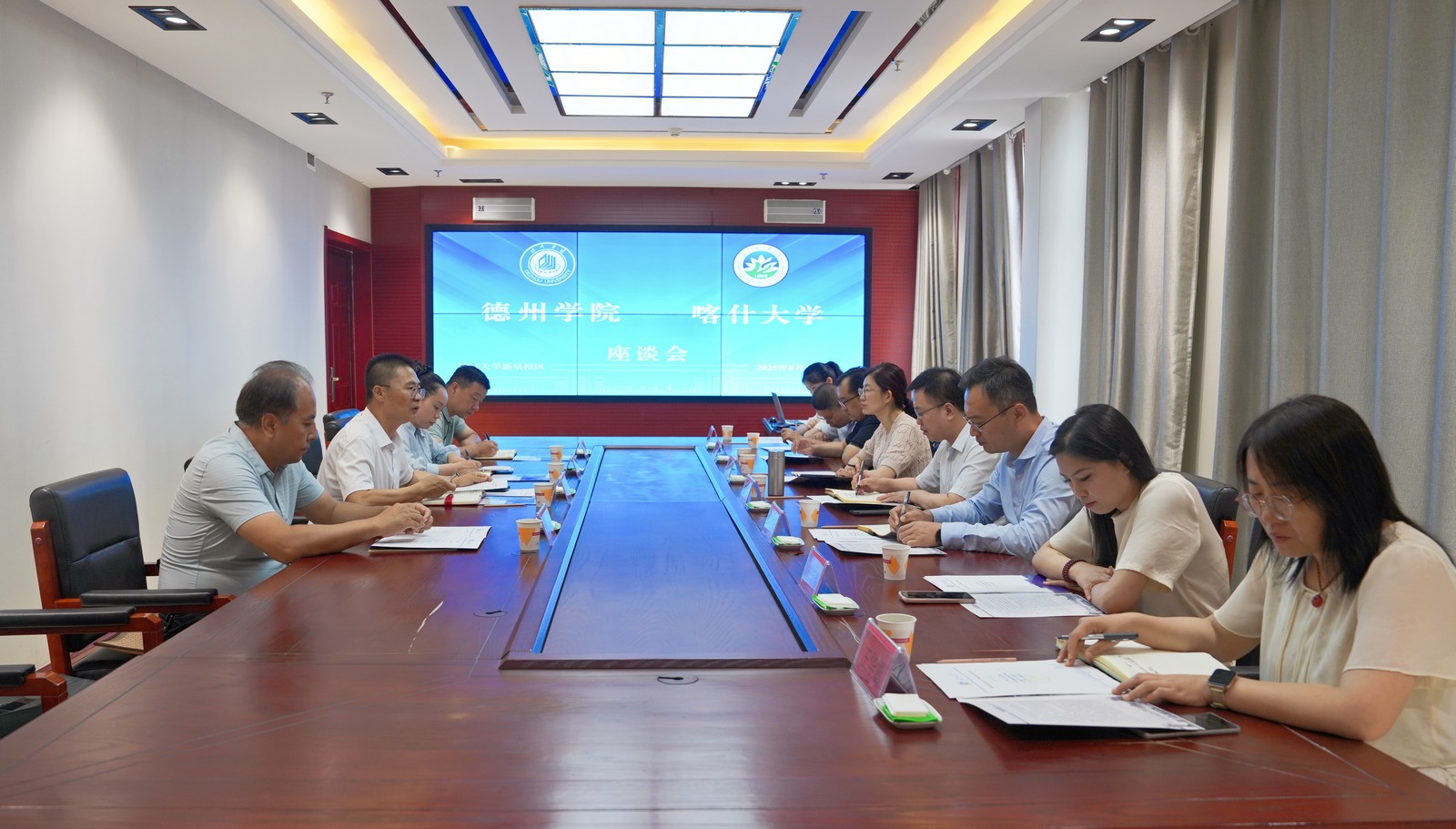 在新疆大学,赵长林一行参观了新疆大学校史馆,与党委常委、副校长赛买江·吾斯曼和对口部门负责同志进行了深入座谈交流。赵长林表示,新疆大学建校百年来秉承“团结、紧张、质朴、活泼”的校训,坚持“以抗大精神育人,为兴疆固边服务”的办学特色,坚持“立足新疆、服务西部、面向全国、辐射中亚”的办学定位,坚持“建强工科、优化理科、繁荣文科、促进交叉”的学科建设理念,在西部地区建成国家“双一流”大学的先进理念、奋斗精神、成功经验对beat365官方网站的高质量发展具有重要的借鉴意义。赵长林介绍了beat365官方网站近年来传承德州冀鲁边区和山东军区渤海教导旅红色基因,大力实施志愿服务西部计划,鼓励毕业生服务新疆、扎根新疆、建设新疆工作情况。双方同意在大学生志愿服务项目、鼓励西部计划志愿者到新疆大学深造、加强学科专业和中亚地区国际交流合作、校际合作服务德州产业发展等领域找准切入点,深化校际项目合作,实现互利共赢特色发展。