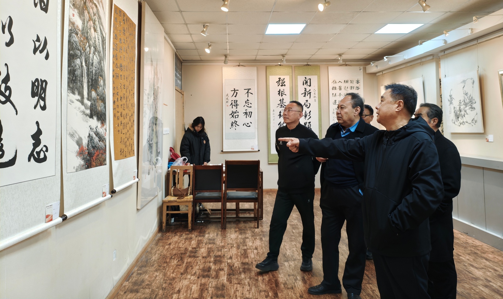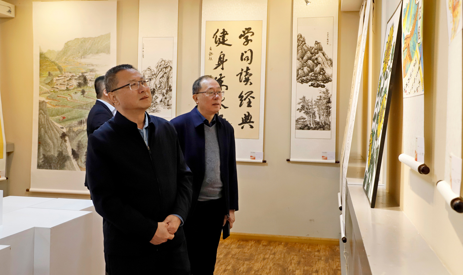 开展期间,德州老年书画协会青少年工作委员会副主任解登尧,校党委书记吴君,校党委副书记张存峰,校关工委主任展德明亲临参观画展。