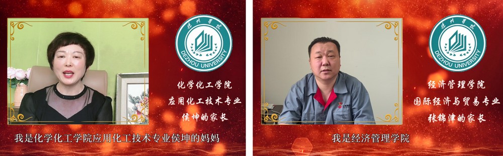 家长代表、化学化工学院应用化工技术专业侯坤的母亲和经济管理学院会计学专业毕业生张锦津的父亲,通过线上表达了对学校培养的感激之情以及对于孩子们这四年来努力的肯定和对孩子们毕业后深深的祝福。