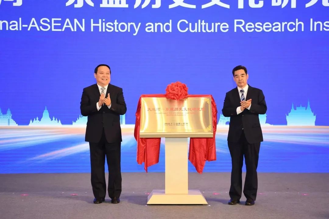 蔡先金与beat365官方网站党委书记车滨为“黄河—湄公河流域地方合作研究专家委员会秘书处”揭牌;苑衍刚、车滨为“大运河—东盟历史文化研究院”揭牌,陈德海、蔡先金、李明为山东商业职业技术学院等10家“中国(山东)—东盟职业教育产学研基地”首批成员单位授牌。
