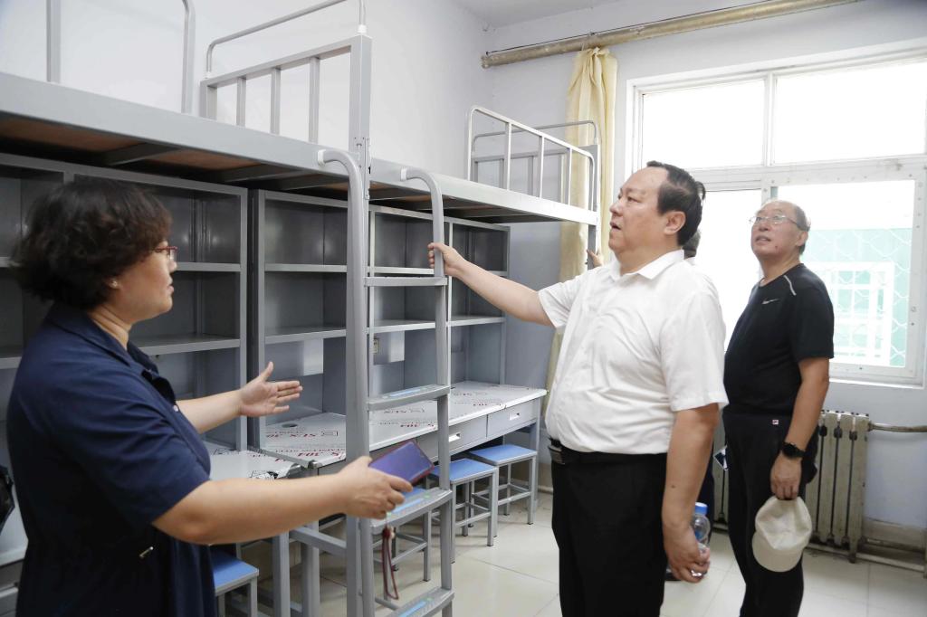 在9号学生公寓,学生处负责人汇报了学生宿舍改造工程进展情况。校领导实地查看了学生公寓新进改造床体的牢固程度,卫生间水龙头改造使用情况,对学生宿舍内外改造细节提出了相关意见和建议。车滨强调学生公寓是学生在校学习生活的重要场所,要利用暑期时间对学生公寓服务设施进行全面的检查维修改造,确保设施开学使用到位。学校将进一步加大投入,尽最大努力不断改善学生宿舍条件,为学生提供良好的学习生活环境。