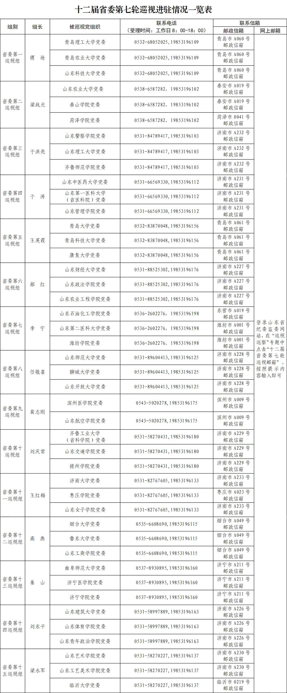 根据省委统一部署,截至3月22日,十二届山东省委第七轮巡视完成进驻工作。15个省委巡视组将对44所省属本科高校党委开展常规巡视。