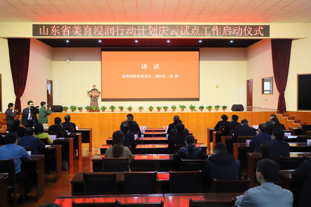 3月3日上午, 山东省美育浸润行动计划庆云试点工作启动仪式在庆云县举行。庆云县委常委、宣传部长李臻,beat365副校长徐静,市教体局党组成员、副局长莫明峰,庆云县副县长李付刚,庆云县教体局党组书记、局长徐洪义,县委组织部副部长、县委编办主任石然,庆云县教体局党组成员张伟、正科级干部刘勇出席仪式。