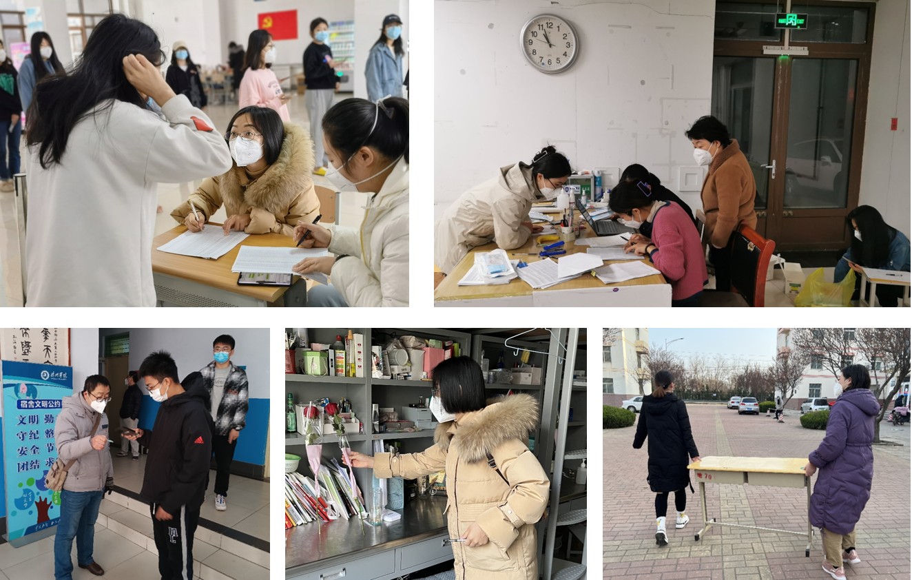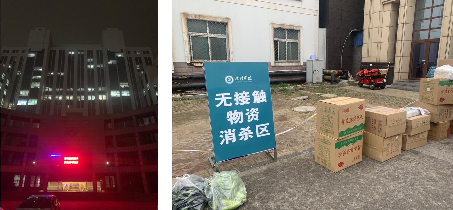 学校封闭管理期间以“三管好四服务两统一”认真做好疫情防控工作。管好门,严格校门封闭管理;管好人,人员禁止进出校园;管好物,停止接受所有外寄物品,设置“生活物资无接触转运消杀点”,实行物资无接触配送。做好生活暖心、心理辅导暖心、线上教学暖心、家长沟通暖心四项暖心服务。在德州市委统筹疫情防控和经济运行工作领导小组(指挥部)的统一指挥下,积极与德州市专班对接协调,认真落实好各项指令。完善了党委书记任总指挥的应急指挥体系,建立了校领导牵头的13个工作专班,班子成员人人有责任、人人扛任务、人人在现场,保证了学校防疫工作的有序开展。学校统一调度全校干部资源,坚持好钢用在刀刃上,选派143名处科级干部进驻学生宿舍和隔离点,实施校领导包片、处级干部包楼、科级干部和辅导员包层的“三包”制度。坚持点线结合、条块统筹,在既有的组织体系基础上强化网格管理,有效加大管控力度。在集中隔离点和学生宿舍楼成立24个临时党支部,党员在急难险重面前做先锋打头阵,真正做到“让党旗在防控疫情斗争第一线高高飘扬”。
