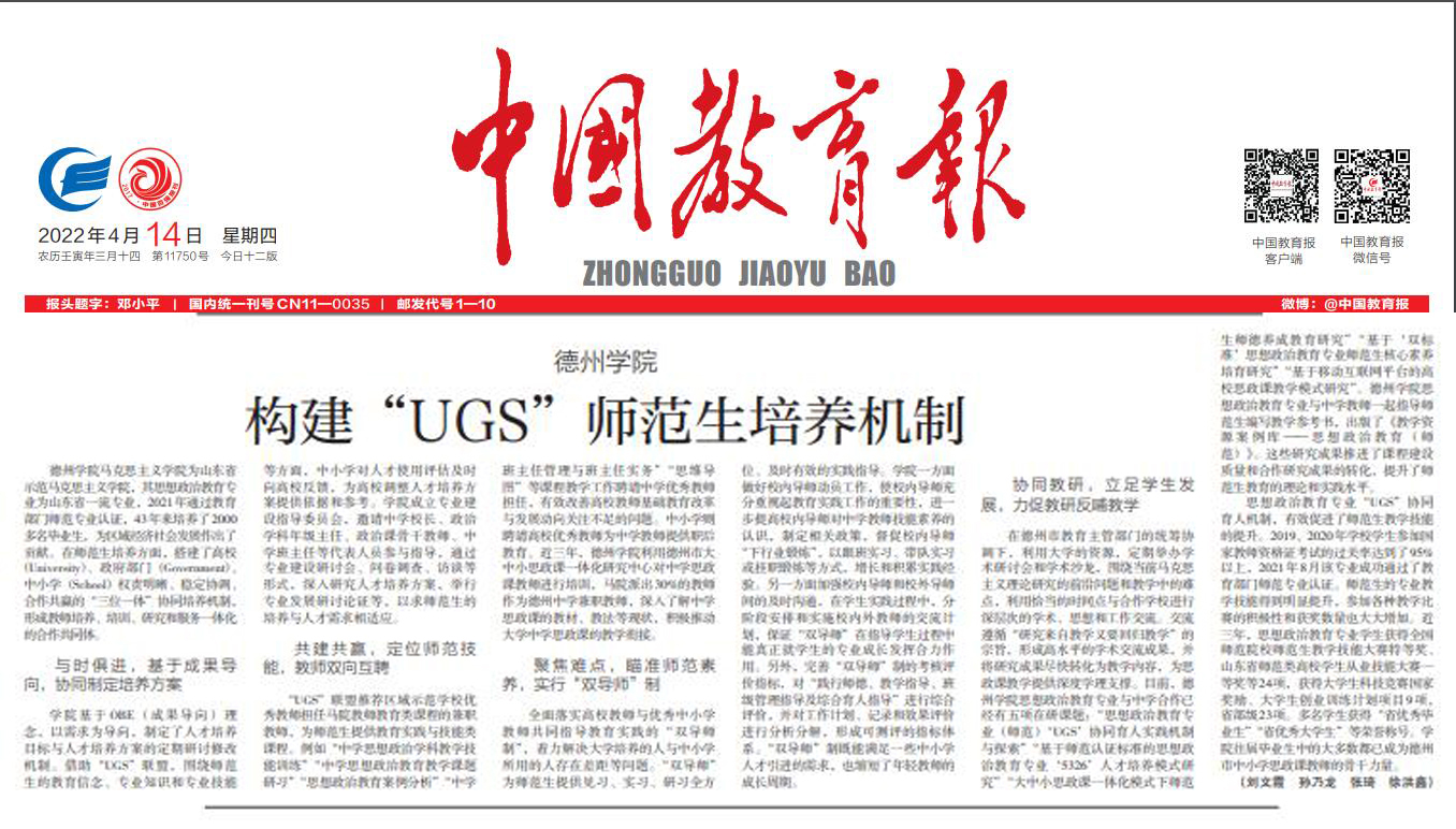 【中国教育报】beat365官方网站:构建“UGS”师范生培养机制