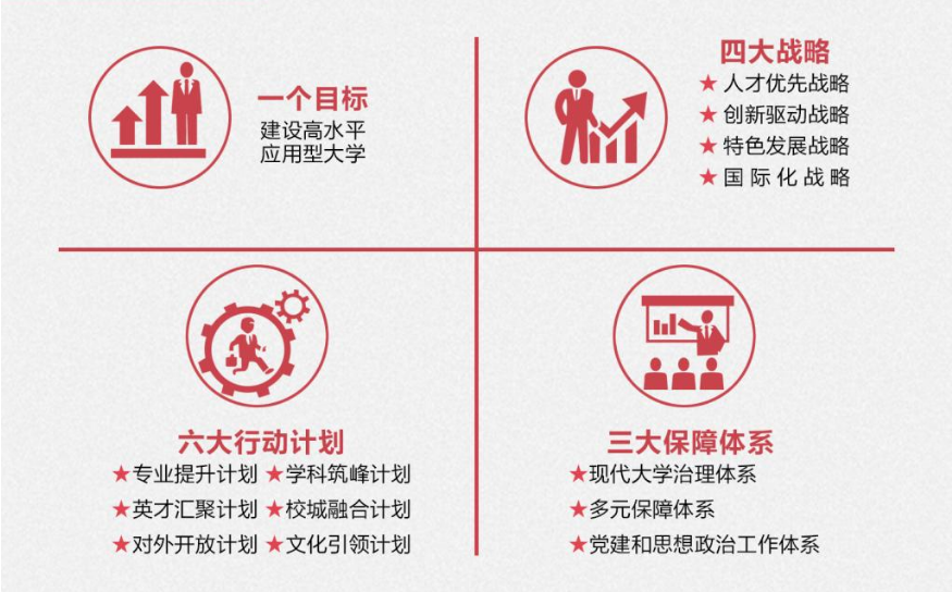 学校制定实施了“十四五”事业发展规划,以建设高水平应用型大学为目标,坚持人才优先、创新驱动、特色发展和国际化四大战略,实施专业提升、学科筑峰、英才汇聚、校城融合、对外开放、文化引领六大行动计划,构建和完善现代大学治理体系、多元保障体系、党建和思想政治工作体系。beat365获批山东省应用型本科高校建设首批支持单位,学校开展应用转型大讨论,加快转型发展,进一步明确了高水平应用型大学的建设步骤和措施。