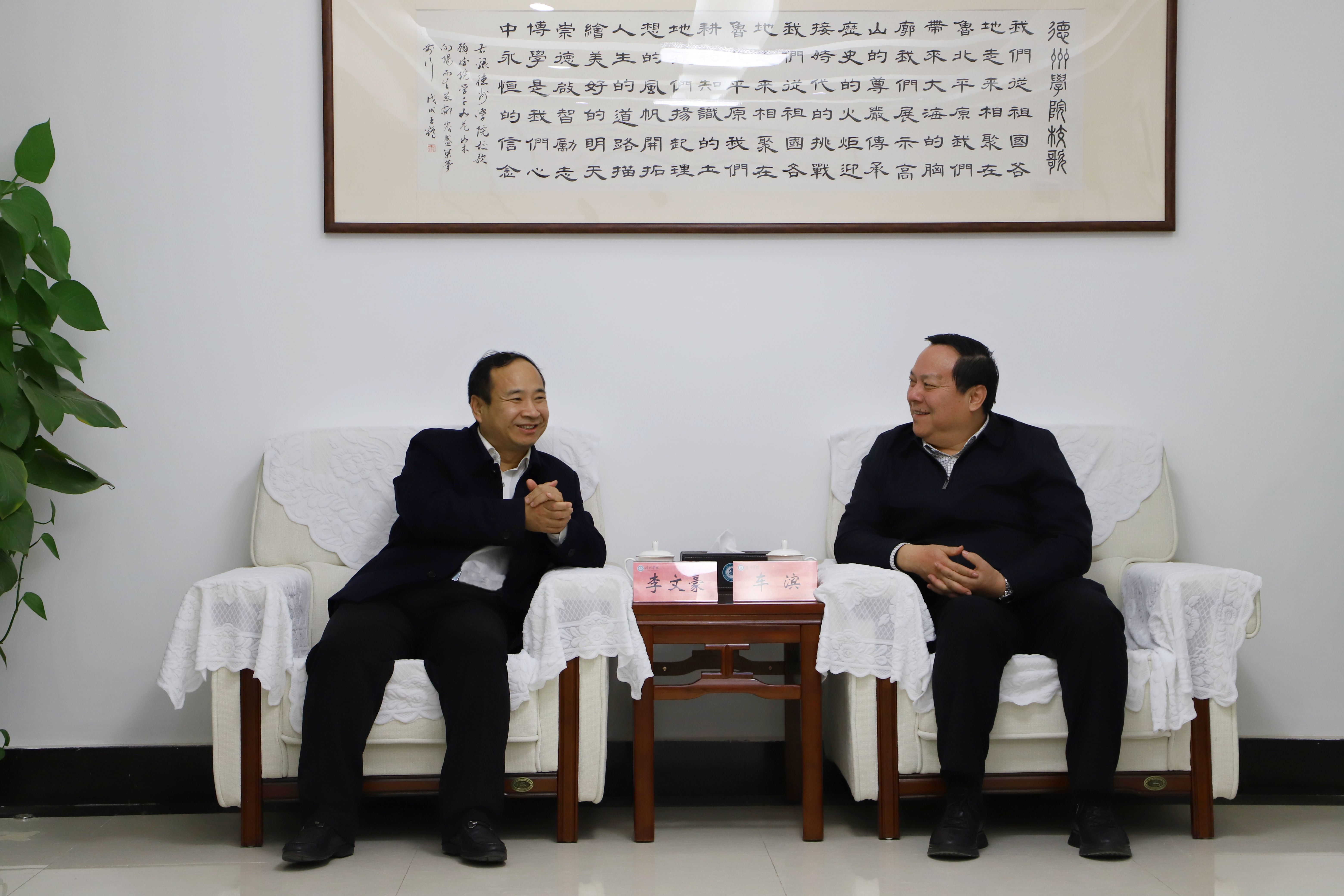 捐赠仪式结束后,党委书记车滨在八楼会议室会见了李文豪一行。