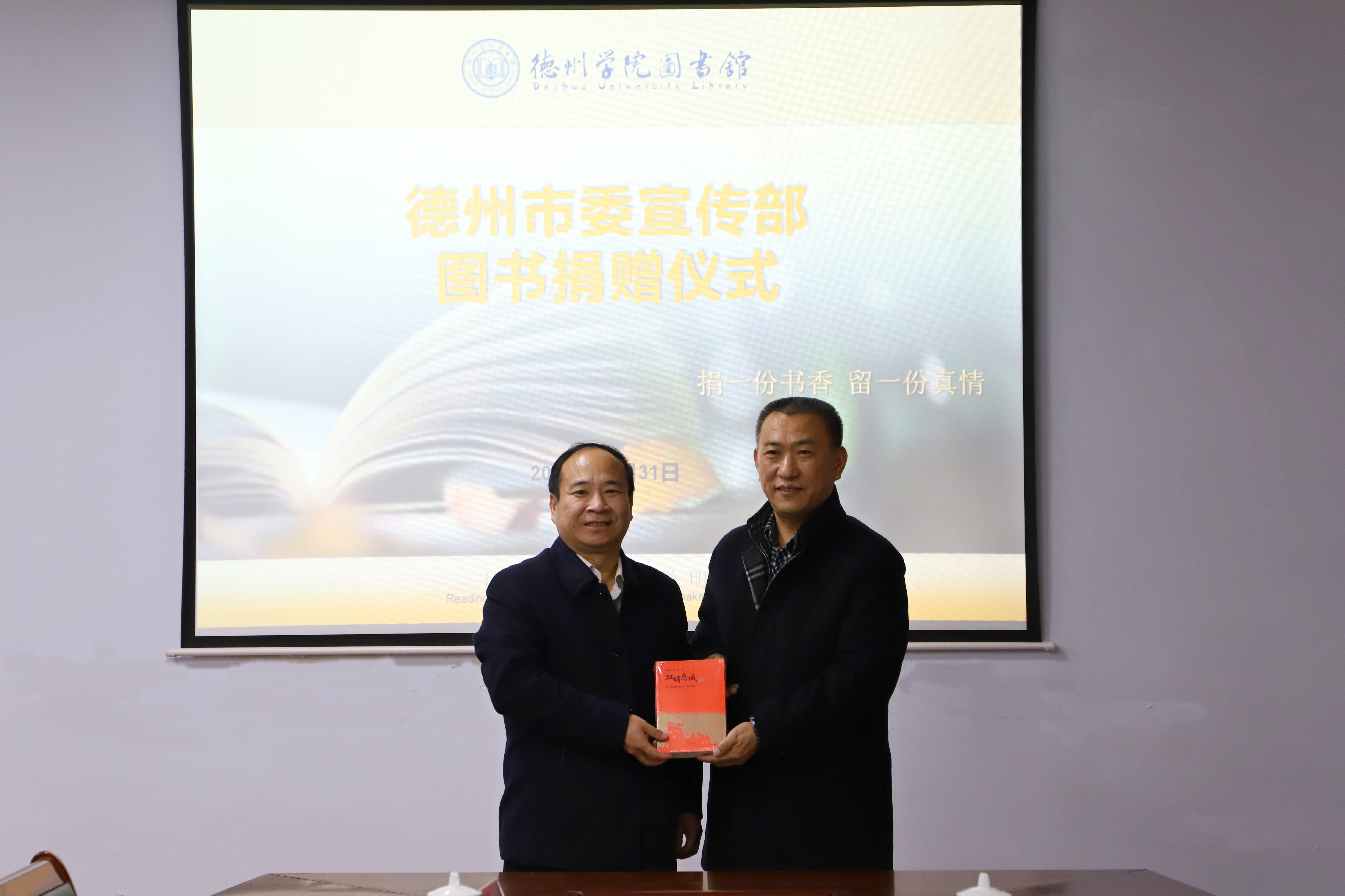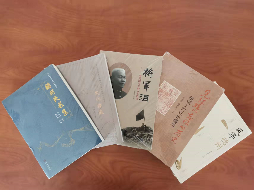本次捐赠图书、光盘共计一百五十余册(盘),均为德州市委宣传部近两年重点策划推出的反映德州市传统文化、地域文化和红色文化的优秀作品。其中荣获山东省第五届“泰山文艺奖”文学创作奖的长篇报告文学《血砺忠诚》是国内首部全景式反映冀鲁边区抗日根据地的纪实作品,作品以冀鲁边区抗日根据地的发展为主线,采用以人物带事件、以事件写人物的方式,围绕冀鲁边区抗日根据地的建立、发展、合并展开宏大的历史叙事,用平实客观的笔调叙写了党领导根据地军民在艰苦卓绝的条件下同日伪顽势力展开殊死斗争的过程,全书紧扣忠诚主题,塑造了以萧华、周贯五、王卓如、牟宜之、马振华、杨靖远、龙书金、杜步舟、黄骅、崔兰仙、余志远、武大风、常大娘等为主的血肉丰满的立体化的英雄群像,讴歌了共产党人和抗日志士为国家为民族甘于牺牲、大义凛然的崇高品质。