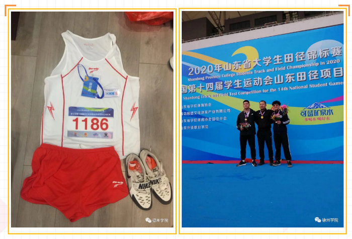 成绩:获2020年山东省大学生田径锦标赛暨全国第十四届学生运动会男子组铁饼冠军及“优秀运动员”荣誉称号。