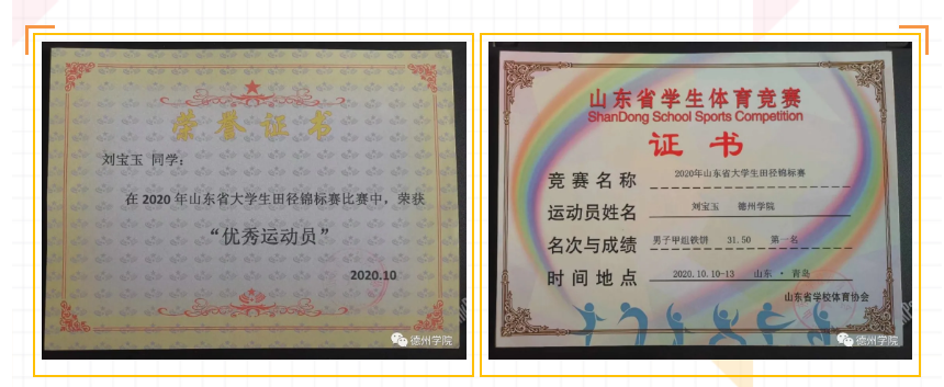 10月10日,2020年山东省大学生田径锦标赛在青岛落下帷幕,beat36518级行政管理专业刘宝玉同学获得了铁饼冠军及“优秀运动员”称号。