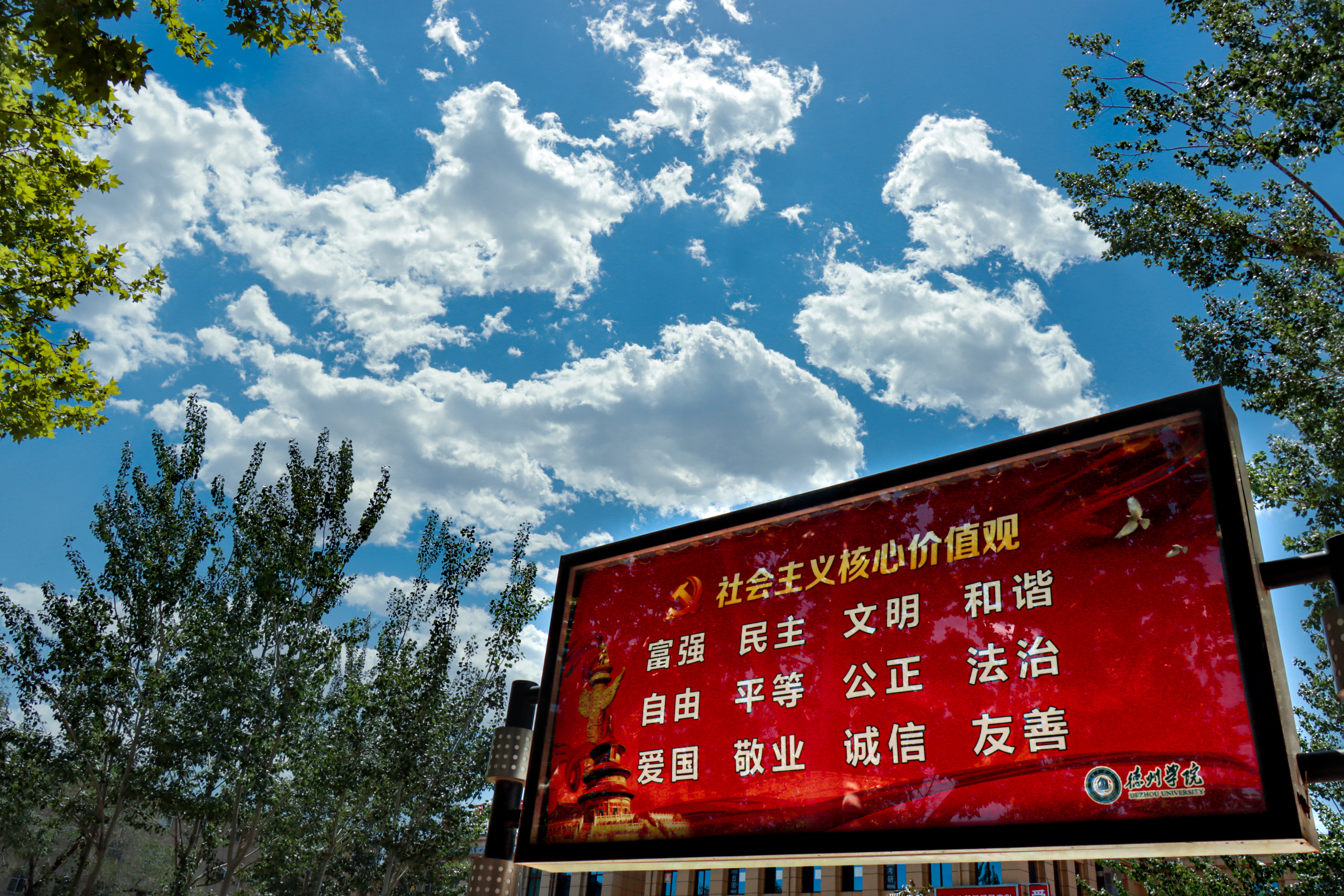 经过雨后的洗礼,beat365官方网站的天空晴空万里、云卷云舒……“治愈系” 蓝天白云再次出现!如画般的美景让人心旷神怡!云彩呈现出波状、絮状、鱼鳞状等,有块状、片状等,云体好像田垄或波浪,美妙无比。趣味摄影课堂学员拍摄校园美景图片,以飨读者。