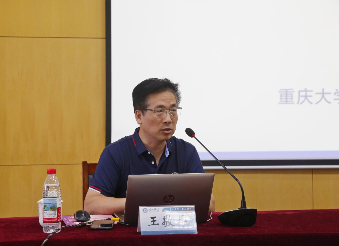 为进一步强化教育家精神培育涵养,凝聚思想共识,汲取榜样力量,引导广大教师自觉用教育家精神强师铸魂,践行教育强国使命担当,全方位提升自身能力素质,为学校高质量发展注入新动能,7月7日上午,学校在厚德楼四楼报告厅举办“弘扬教育家精神,建设高素质专业化教师队伍”名师讲坛活动。本次活动邀请重庆大学材料与工程学院党委书记,二级教授、博士生导师王敬丰作专题讲座。党委委员、副校长李甲亮出席活动并主持。