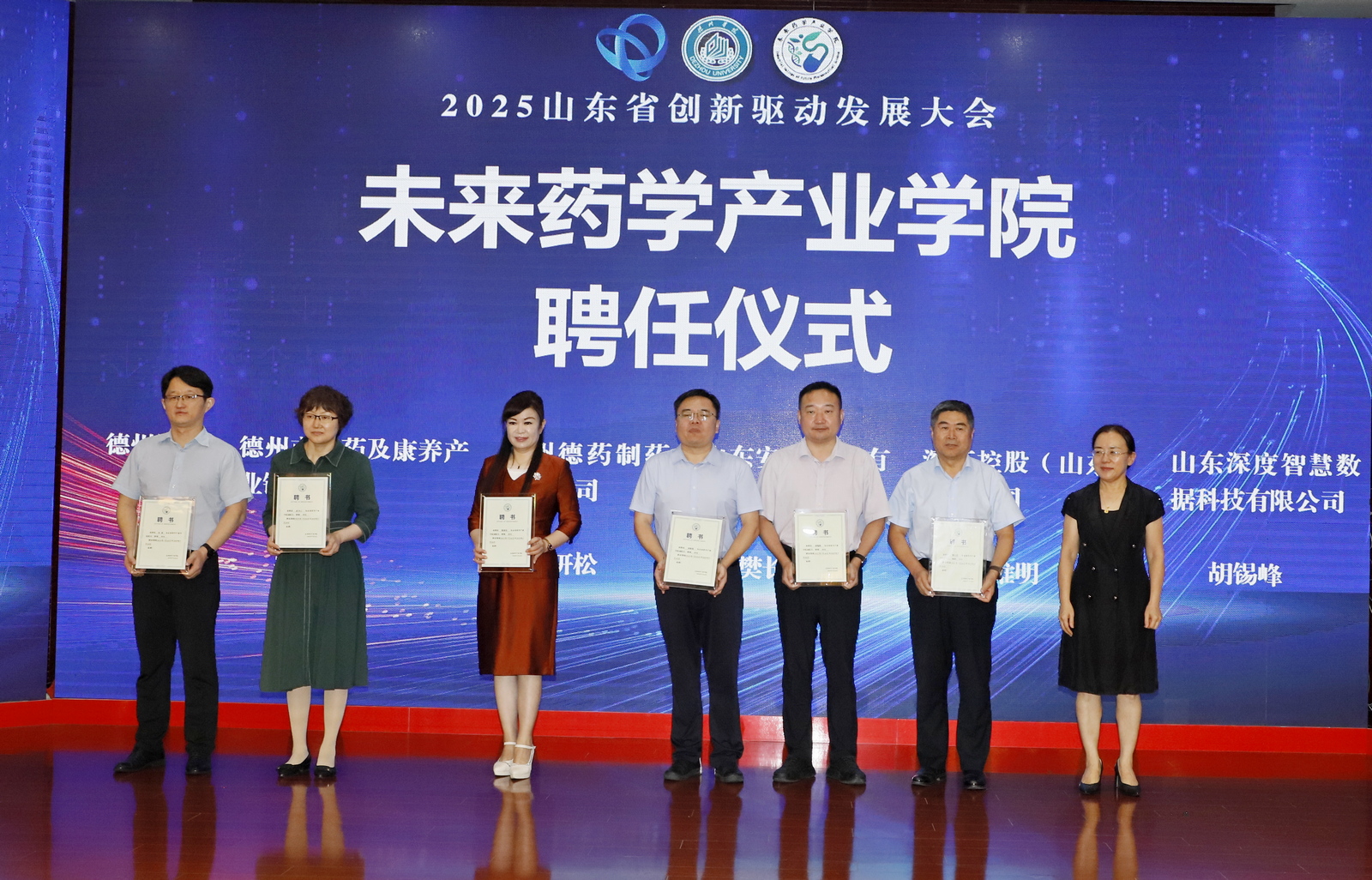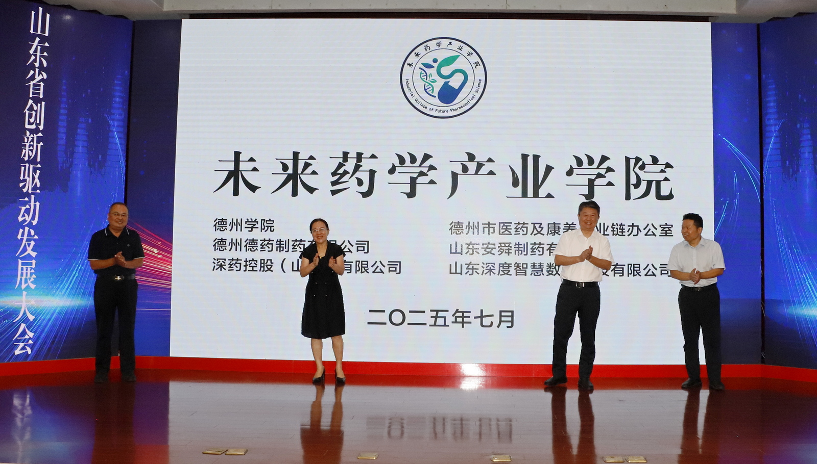 7月26日上午,政产学研合作激活生物医药新质生产力会议暨未来药学产业学院成立大会在德州市柳湖书院酒店举办。此次会议是2025山东省创新驱动发展大会系列活动之一,由德州市科学技术协会、beat365官方网站药学院、德州市医药及康养产业链办公室联合主办,上海甘泓生物医学科技有限公司、深药控股(山东)有限公司等7家企事业单位协办。beat365党委委员、副校长徐静,德州市科学技术协会、卫生健康委员会、发展和改革委员会相关职能部门负责人,来自清华大学、武汉大学等11所高校及研究院知名专家,德州市医养健康股份有限公司等7家企业代表及beat365药学院全体师生百余人参加会议。