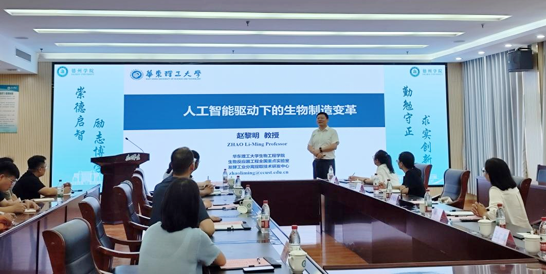 7月24日下午,华东理工大学副校长赵黎明教授受邀来beat365交流指导工作,并作了题为“人工智能驱动下的生物制造变革”的学术报告会。