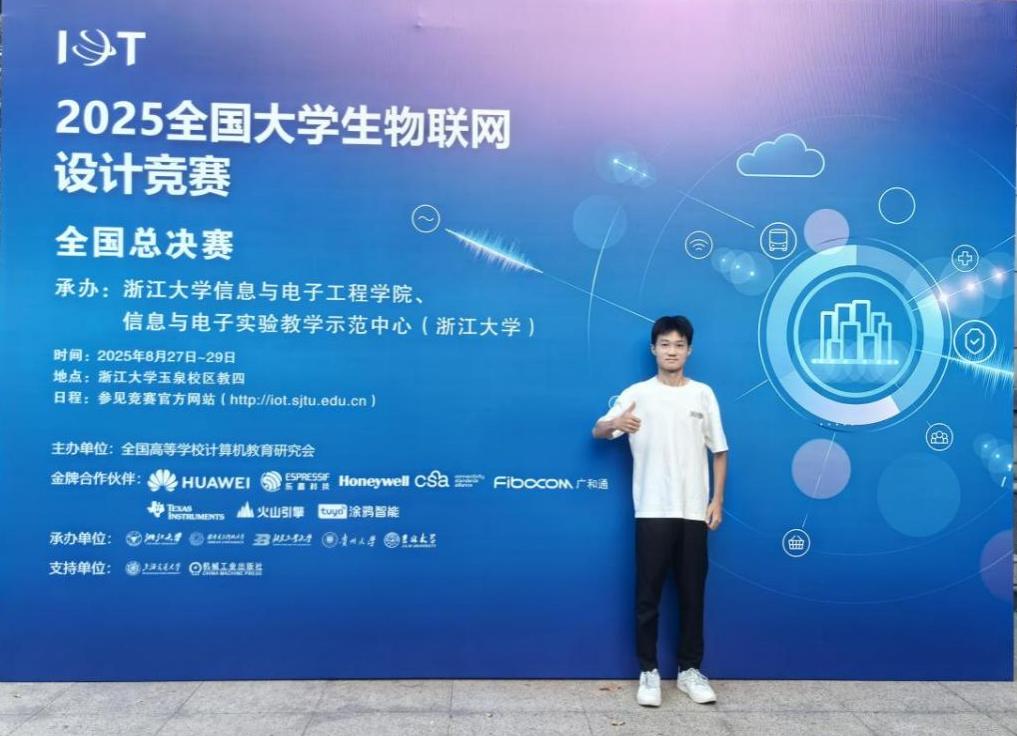 近日,2025年全国大学生物联网设计竞赛全国总决赛在浙江大学举行。beat365由董文会老师指导的任逢瑜、贾方龙、赵誉和巩佳琪团队首次参赛即获得全国总决赛一等奖1项。