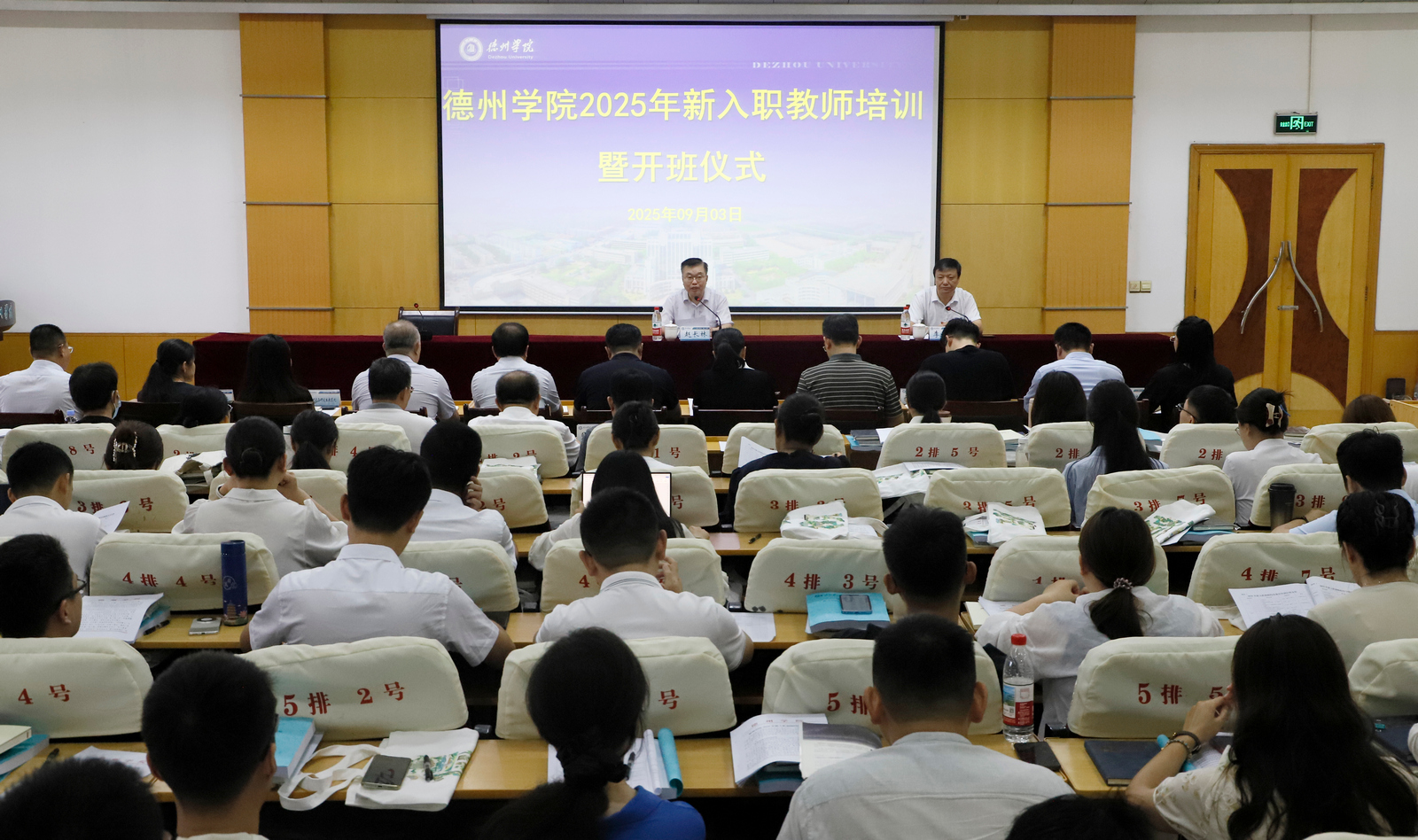 2025年新入职教师培训开班仪式于9月3日在厚德楼四楼报告厅举行。党委副书记、校长赵长林出席仪式并讲话,党委委员、副校长李甲亮出席仪式。李甲亮主持仪式。
