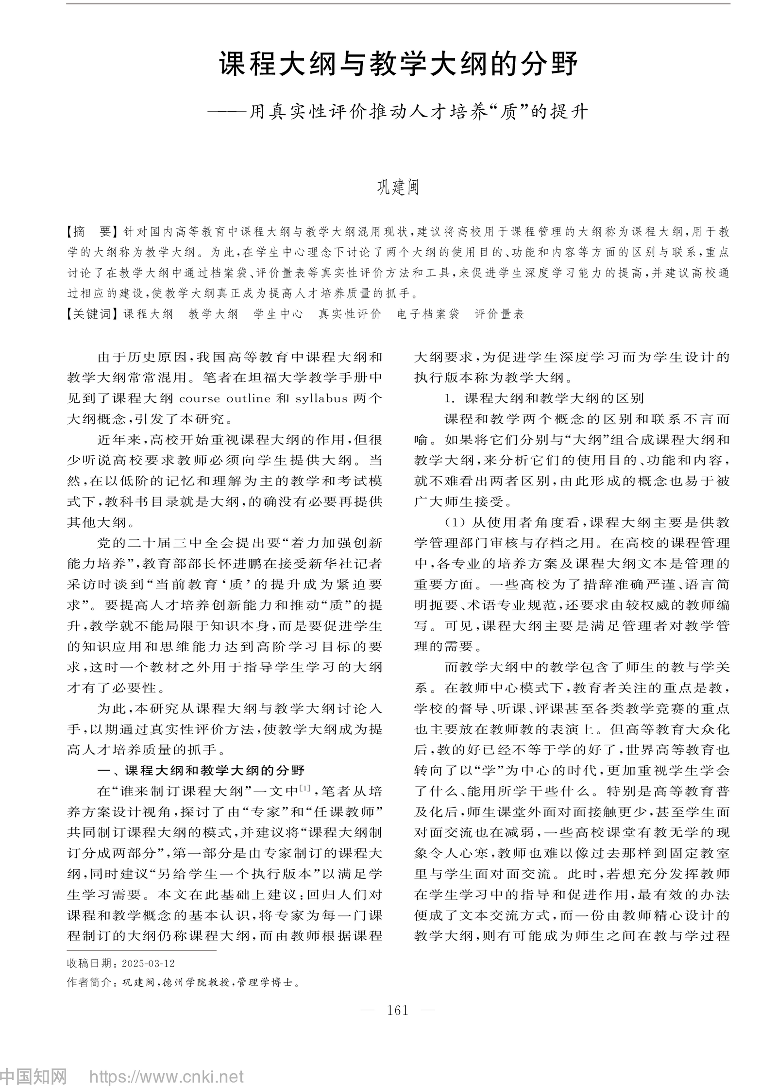 近日,beat365官方网站原副校长、管理学博士巩建闽教授在《高等工程教育研究》2025年第五期发表了题为《课程大纲与教学大纲的分野——用真实性评价推动人才培养“质”的提升》的学术论文。作为退休老干部,巩教授长期致力于高等教育改革与人才培养研究,此次论文从课程大纲与教学大纲的差异入手,提出通过真实性评价推动学生深度学习,为提升高等教育质量提供了新思路。