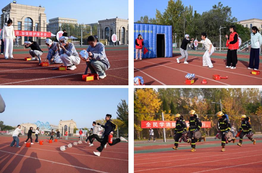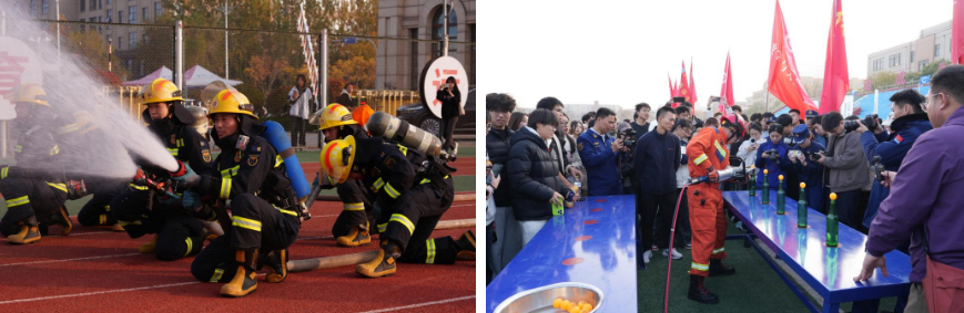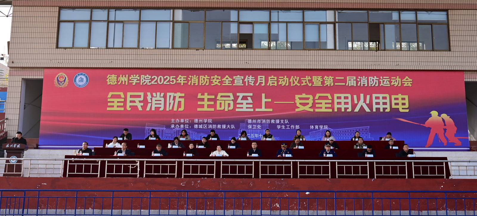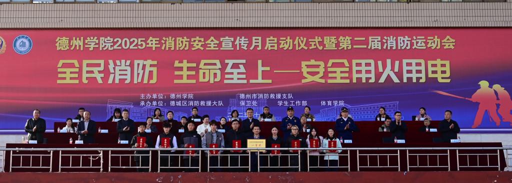 本次活动由德城区消防救援大队与学校保卫处、学生工作部、体育学院、团委联合举办。学校资产管理处、后勤管理处、实验管理中心等单位负责人及各学院党委副书记到场观摩。师生代表与第三方服务人员共300余人参赛, 吸引千余名师生驻足观看,现场气氛热烈。活动还通过“德州晚报”抖音号与视频号同步直播,线上观看人次突破2万,进一步扩大了宣传覆盖面与社会影响力。