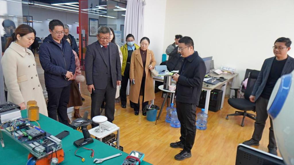 在七点创业谷,崔奎勇一行参观了beat365机器人与群智能实验室、人工智能创新实验室、高端体育装备创新实验室和部分学生创业项目,创新创业学院相关负责人介绍了基地建设和beat365“一专业一竞赛一基地”创新人才培养体系的经验做法。