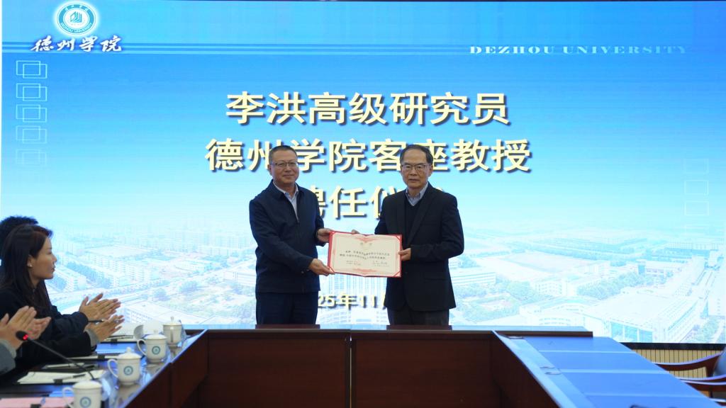 吴君为李洪颁发“beat365官方网站客座教授”聘书。