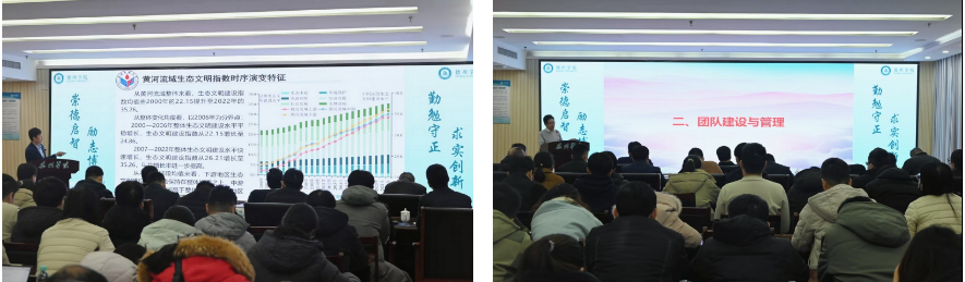 会上,王成新教授作了《黄河流域生态文明指数的构建与时空演变》的报告。报告中阐明了黄河流域生态文明建设的重要意义,探索了多种生态文明指数在黄河流域的应用,对黄河流域主要城市进行了全面的生态评价,并对黄河流域生态文明建设提出了合理建议;田业冰教授作了《浅谈科研创新团队建设与管理》的报告。报告从阐明建设科研创新团队的重要性入手,从人才发展路径、激励机制、成员分工等多个角度分享了科研创新团队建设和管理的相关经验。学校来自8个理工类教学科研单位的10位科研创新团队负责人就各自近期开展的研究工作及团队运行管理机制作了相关报告。