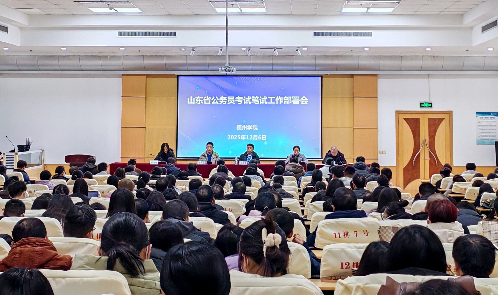 学校对本次考试组织工作高度重视,第一时间成立了以党委委员、副校长徐静为领导的考试领导小组,构建起“统一领导、分工负责、协同发力”的工作格局。考前,学校召开全体监考教师和考务人员工作部署会议,德州市委组织部副部长杨登雷、德州市人社局党组成员、人事考试中心主任张广龙、德州市人社局考试中心负责人代云红,以及学校各相关职能部门、各学院负责人出席会议。