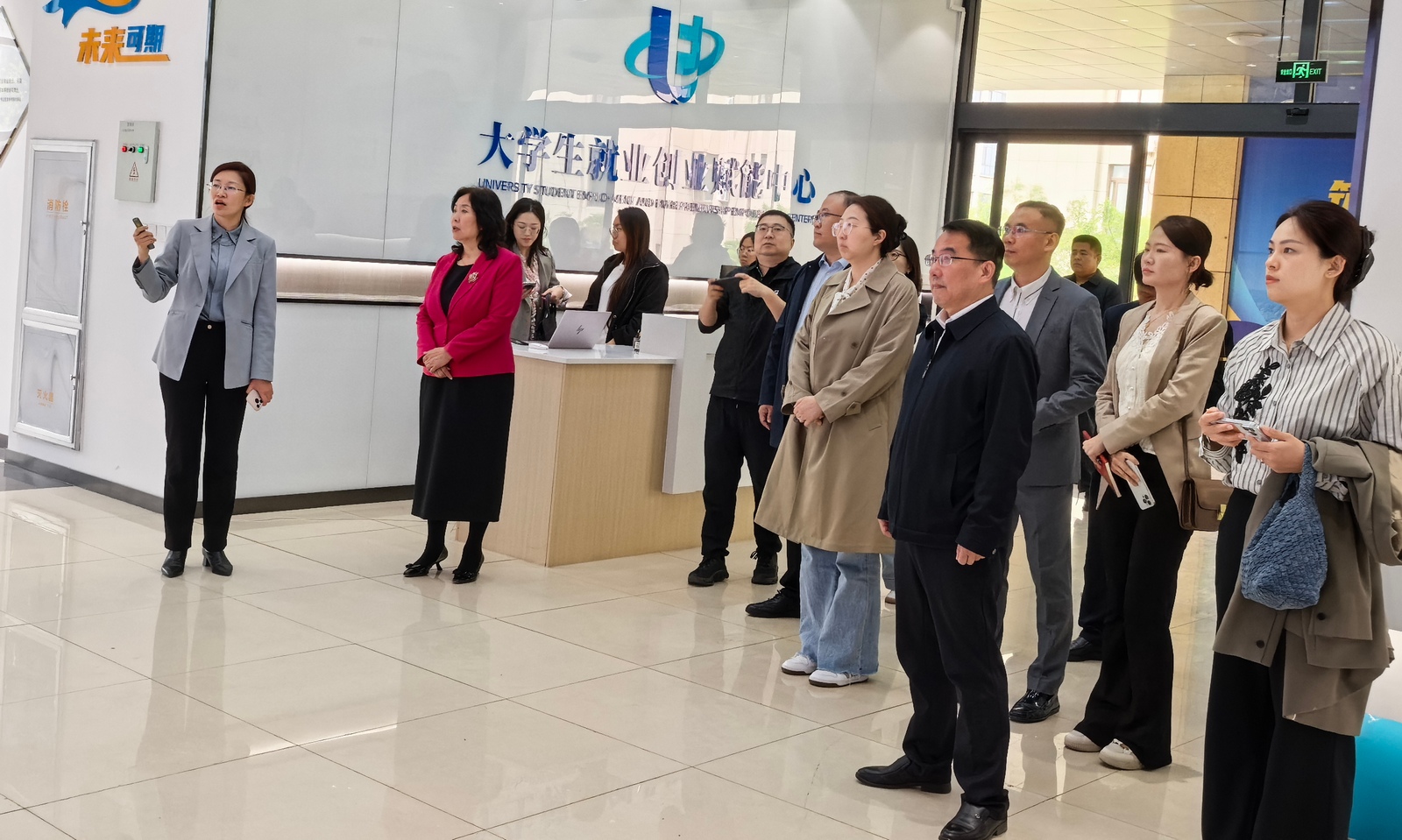 4月23日,天津市津南区人社局副局长张媛、天津滨海汽车工程职业学院理事长贾秀芳一行来beat365参观考察就业创业赋能中心建设及运行情况。学校党委委员、副校长单振涛参加活动。