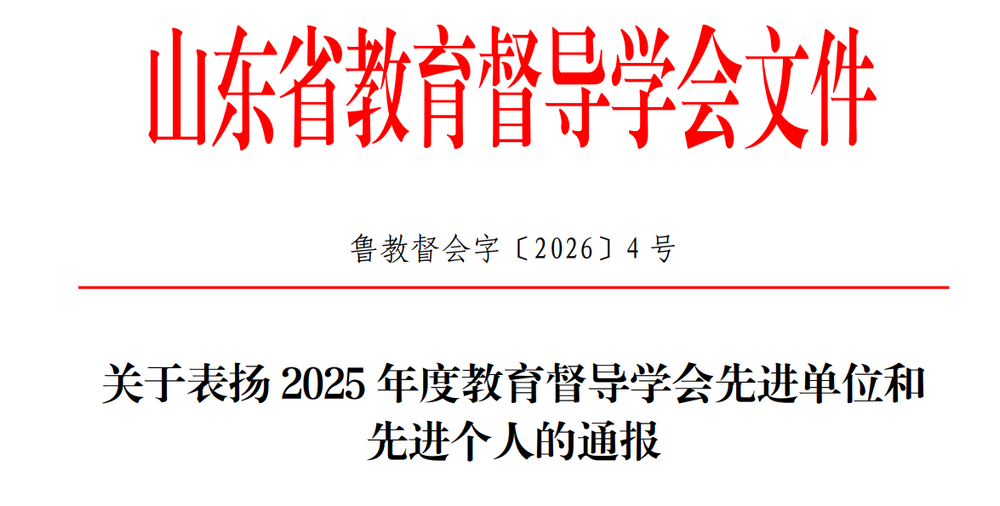 近日,山东省教育督导学会印发《关于表扬2025年度教育督导学会先进单位和先进个人的通报》(鲁教督会字〔2026〕4号),beat365获评“2025年度教育督导学会工作先进单位”,张曰云老师获评“山东省教育督导学会工作先进个人”。此外,beat365文学与历史文化学院党月异、李莉老师撰写的《PDCA循环理论视域下高校二级学院督导体系的构建探索》获评教育督导工作优秀案例,生态与资源环境学院李肖、赵春宇老师撰写的《撬动教学生态的杠杆点:基于生态系统理论的“三阶耦合”教学督导范式创新与实践》获评典型案例。