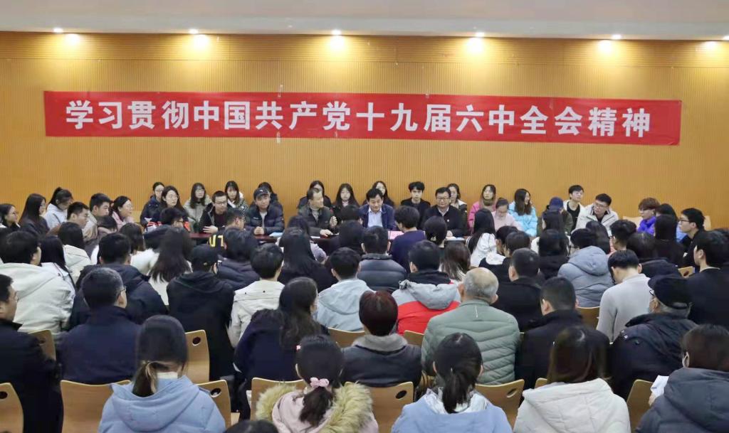 12月14日晚,校长赵胜村在博文楼327报告厅为法学院师生宣讲党的十九届六中全会精神。