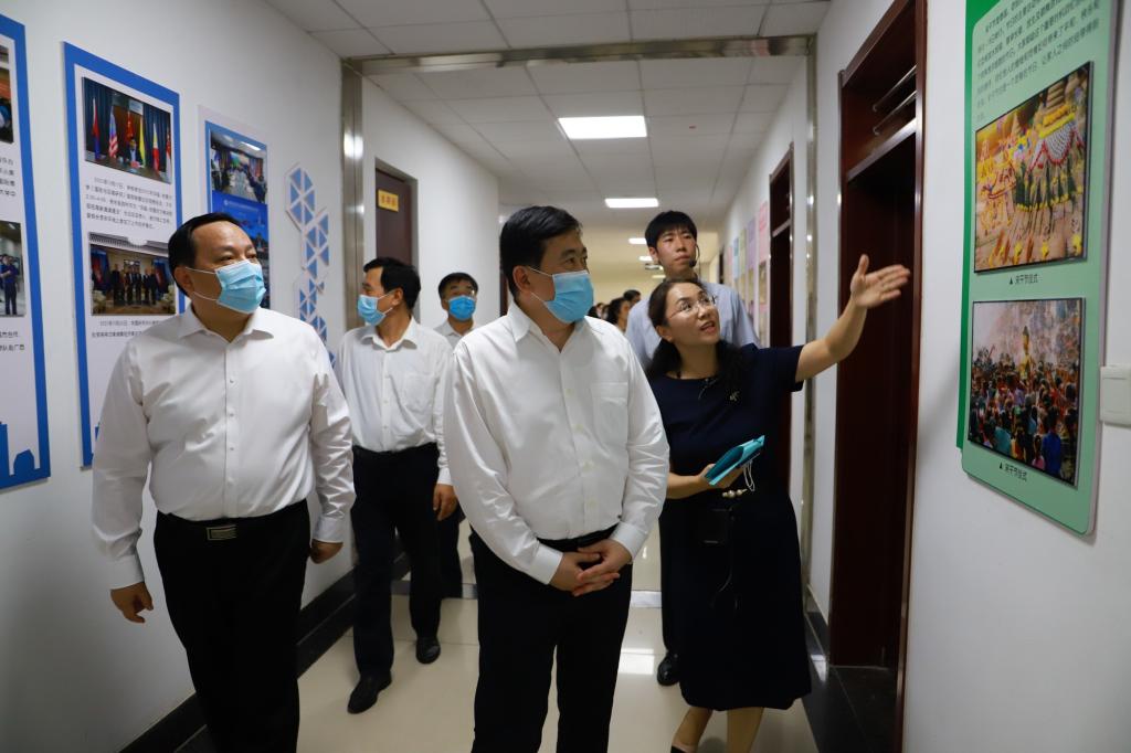 阿塔育•习萨目大使一行沿途参观了校史馆、图书馆、学生餐厅、生化楼等教学设施和生活场所。重点参观了国家纺织面料馆德州分馆、东盟研究中心,学校相关人员向来宾介绍了纺织服装专业的发展情况,在东盟研究中心双方就开展交流活动进行了深入探讨,同时大使一行在博文楼借阅中心对beat365馆藏图书产生了浓厚兴趣,随后在博文楼北大厅进行了文艺展演活动。