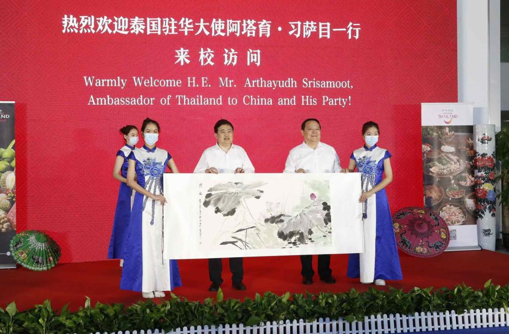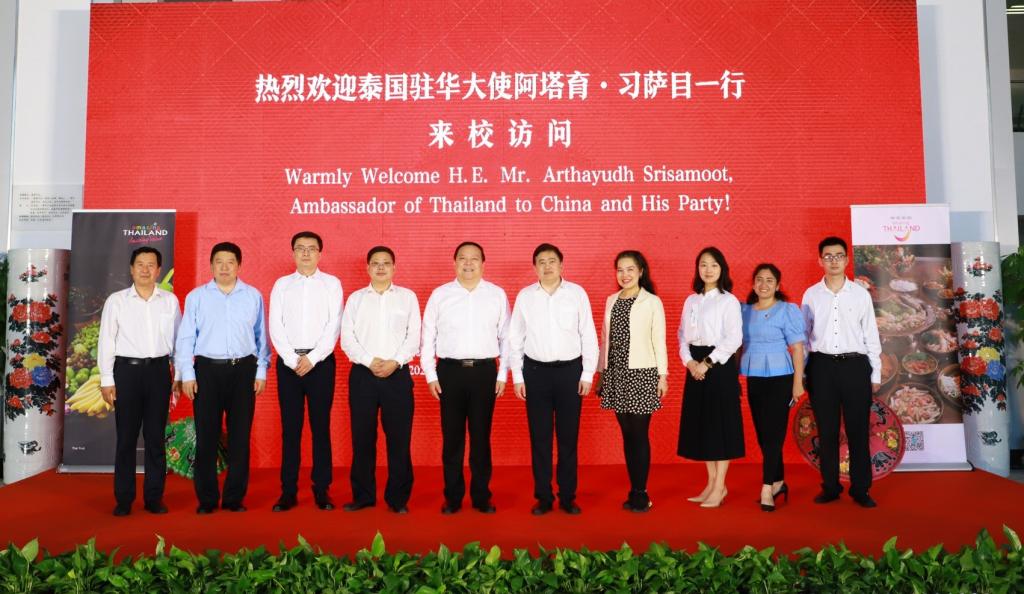 6月23日下午,泰国驻华大使阿塔育·习萨目一行来校访问。学校对阿塔育·习萨目大使一行进行了热情的接待。泰国驻华大使阿塔育•习萨目及夫人美苹·习萨目,泰国驻青岛总领事馆副总领事金清清,泰国驻华大使馆一等秘书卢欣然,省委外办副主任孙业宝,省委外办亚洲处处长、二级巡视员马军,德州市副市长牟春雁,市人民政府外事办公室主任蔡文晓、副主任谭明明,beat365官方网站党委书记车滨、副校长李永平、党委宣传部(教师工作部)部长任立春等出席活动。