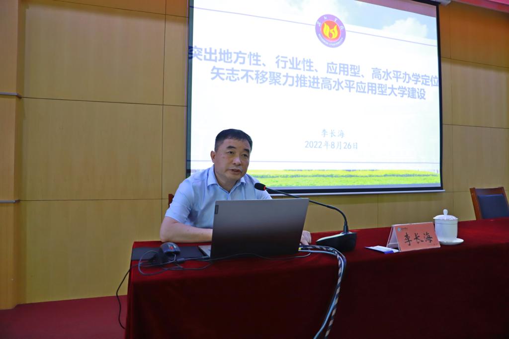 滨州学院党委副书记、校长李长海以《突出地方性、行业性、应用型、高水平办学定位,矢志不移聚力推进高水平应用型大学建设》为题,就滨州学院坚持“六个聚焦聚力”做大做强做优航空特色品牌,全力以赴推动应用型大学建设作了经验介绍。