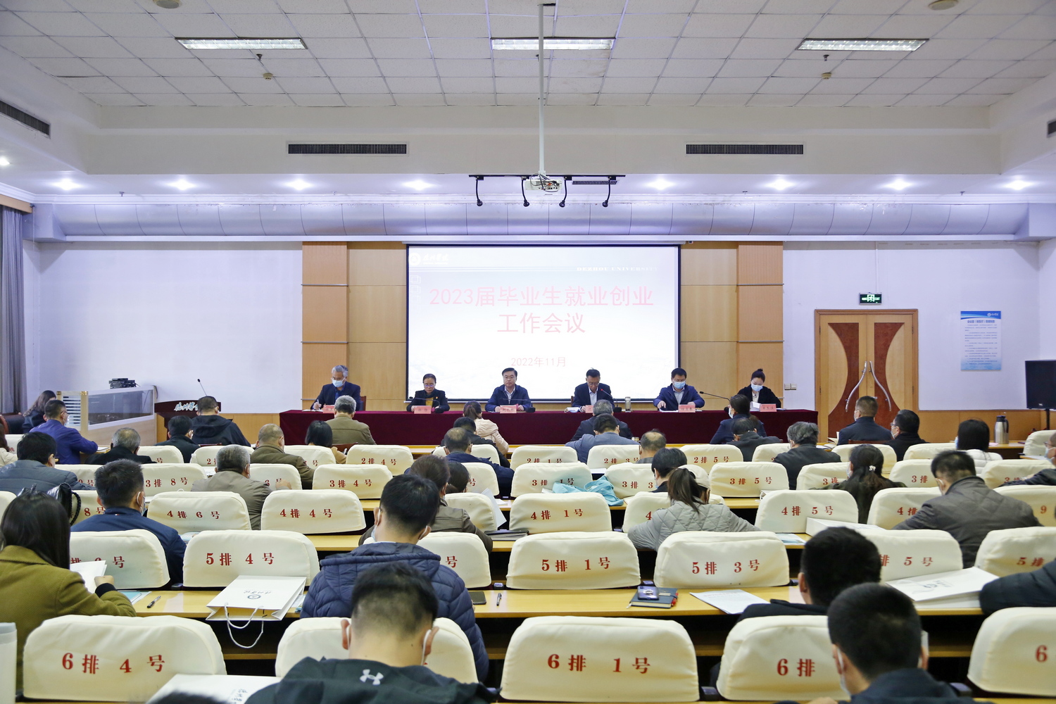 学校就业工作领导小组成员,各学院党委书记、副书记、毕业班辅导员,就业指导处、创新创业学院全体人员参加了会议。