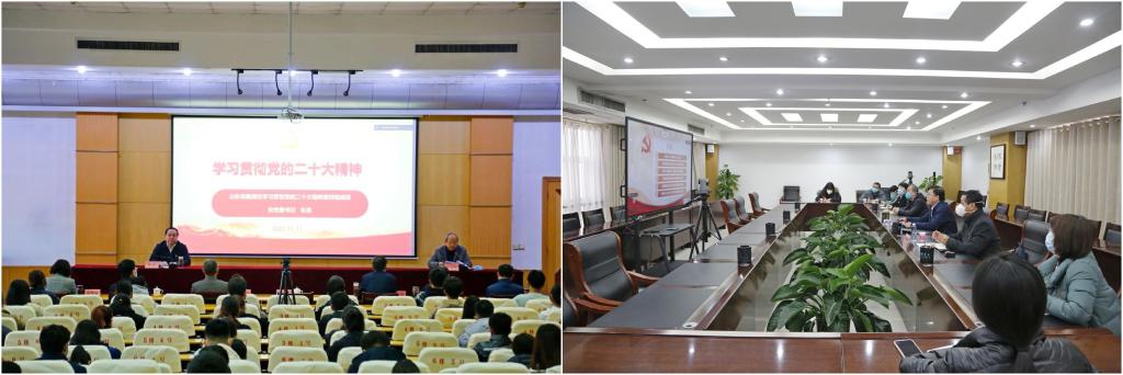 学校党委认真组织全校师生收听收看党的二十大开幕会盛况,召开专题会议传达学习宣传贯彻党的二十大精神,印发《关于全校深入学习宣传贯彻党的二十大精神的通知》,制定培训方案,组建党的二十大精神宣讲团,开展全方位、多层次、全覆盖的培训宣讲活动。制定《关于推进党的二十大精神“三进”工作的若干措施》,持续掀起学习宣传贯彻党的二十大精神的热潮。全校师生坚持用习近平新时代中国特色社会主义思想凝心铸魂,深刻领悟“两个确立”的决定性意义,增强“四个意识”、坚定“四个自信”、做到“两个维护”。