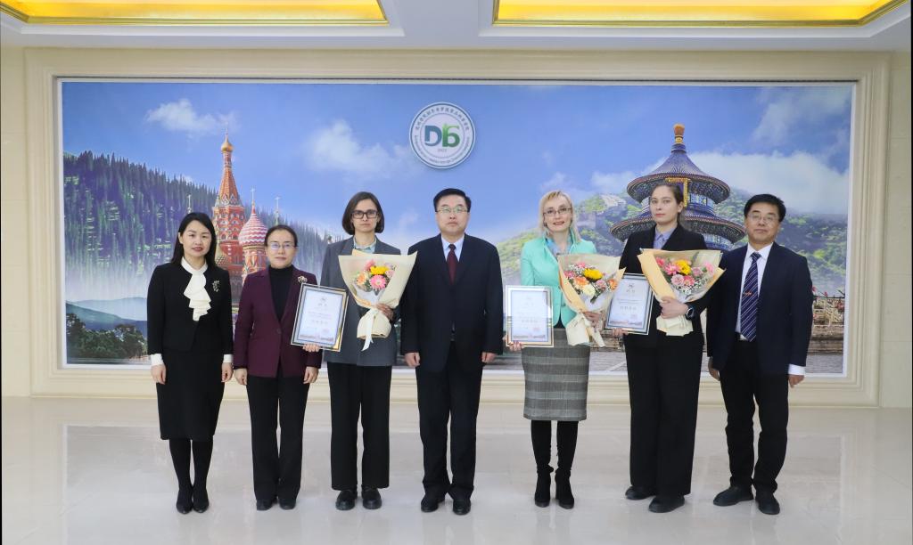 人事处相关负责人宣读了学校同意学院聘任祖巴列娃·叶卡特琳娜·弗拉蒂米洛夫娜、维尼琴科·玛丽亚·亚历山大罗夫娜、塔拉申科·叶甫盖尼亚·安德烈耶夫娜任beat365官方网站别尔哥罗德食品科学学院特聘教授的决定。校长赵长林应邀为三位外籍教师颁发聘书。