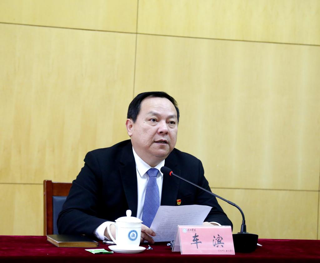 会上,车滨就扎实开展主题教育进行动员部署。车滨说,要全面深刻认识开展学习贯彻习近平新时代中国特色社会主义思想主题教育的重大意义。全校各级党组织和广大党员、干部要深入学习领会习近平总书记重要讲话精神和党中央的决策部署,深入学习贯彻省委的工作要求,把开展主题教育作为加强理论武装、加快强省建设、推进全面从严治党的实际行动,切实增强开展主题教育的政治自觉、思想自觉和行动自觉。