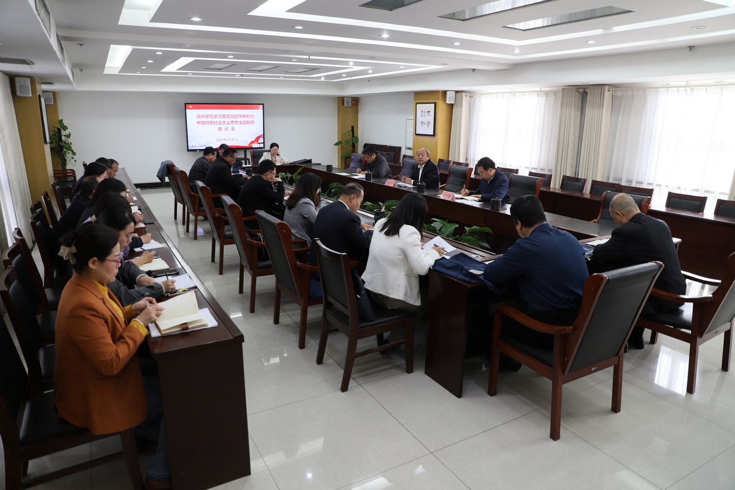 4月27日下午,学校在厚德楼第七会议室召开学习贯彻习近平新时代中国特色社会主义思想主题教育座谈会。党委副书记王金利,党委委员、宣传部(教师工作部)部长任立春出席会议。
