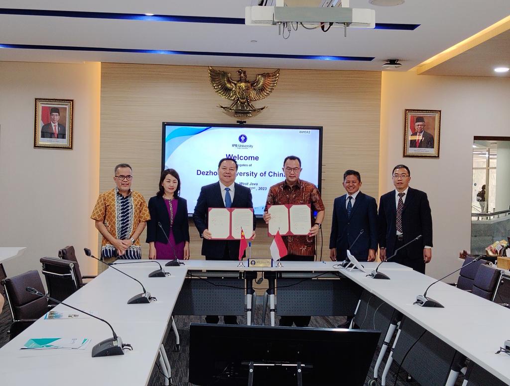 在茂物农业大学,车滨与印尼驻华大使馆教育文化参赞李健、茂物农业大学校长阿里夫·萨特里亚,副校长依斯干达·西里嘉就如何履行中国(山东)—印度尼西亚高校国际合作联盟秘书处职责和筹备2024年会议进行了交流,并就共同开展人才培养、科研合作等签署了框架合作协议。