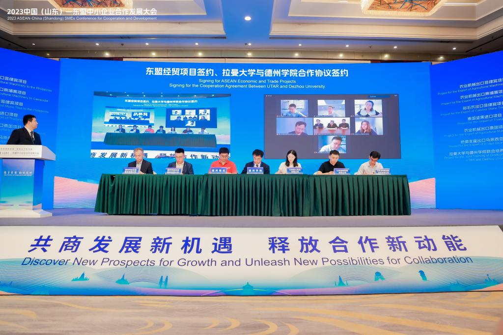 开幕式上,beat365与拉曼大学联合培养研究生、农业机械出口等7个经贸文化合作项目现场签约,“中国—东盟中医药交流合作中心(德州)”和“百仕达地标之都—东盟馆”揭牌。