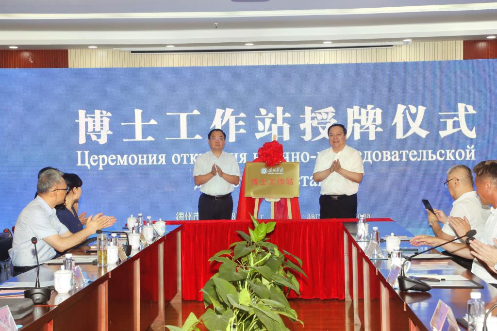 车滨、王力同为德州财金智慧农业科技有限公司beat365官方网站博士工作站揭牌。