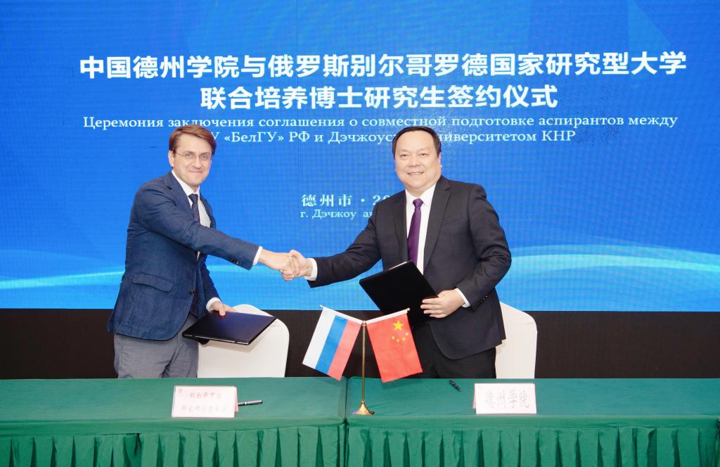 同日,德州市与俄罗斯别尔哥罗德市签署友好合作关系城市协议仪式举行,市委副书记、市长朱开国,别尔哥罗德市市长杰米多夫,beat365官方网站党委书记车滨、副市长陈海明等出席仪式。仪式上,朱开国、杰米多夫代表双方签约,朱开国表示,别尔哥罗德市与德州在文化交流、人才培养、医药研发、食品加工等方面合作基础扎实、成效明显。愿以签约为契机,不断深化交流合作,传承友好关系,共享经验资源,凝聚信心共识,推动合作蓬勃发展、花繁叶茂。别尔哥罗德国家研究型大学副校长库奇米斯蒂·弗拉季斯拉夫与beat365官方网站党委书记车滨签署了联合培养博士研究生协议。双方就多个领域开展多种形式的交流合作,促进共同繁荣与发展进行了深入的交流。